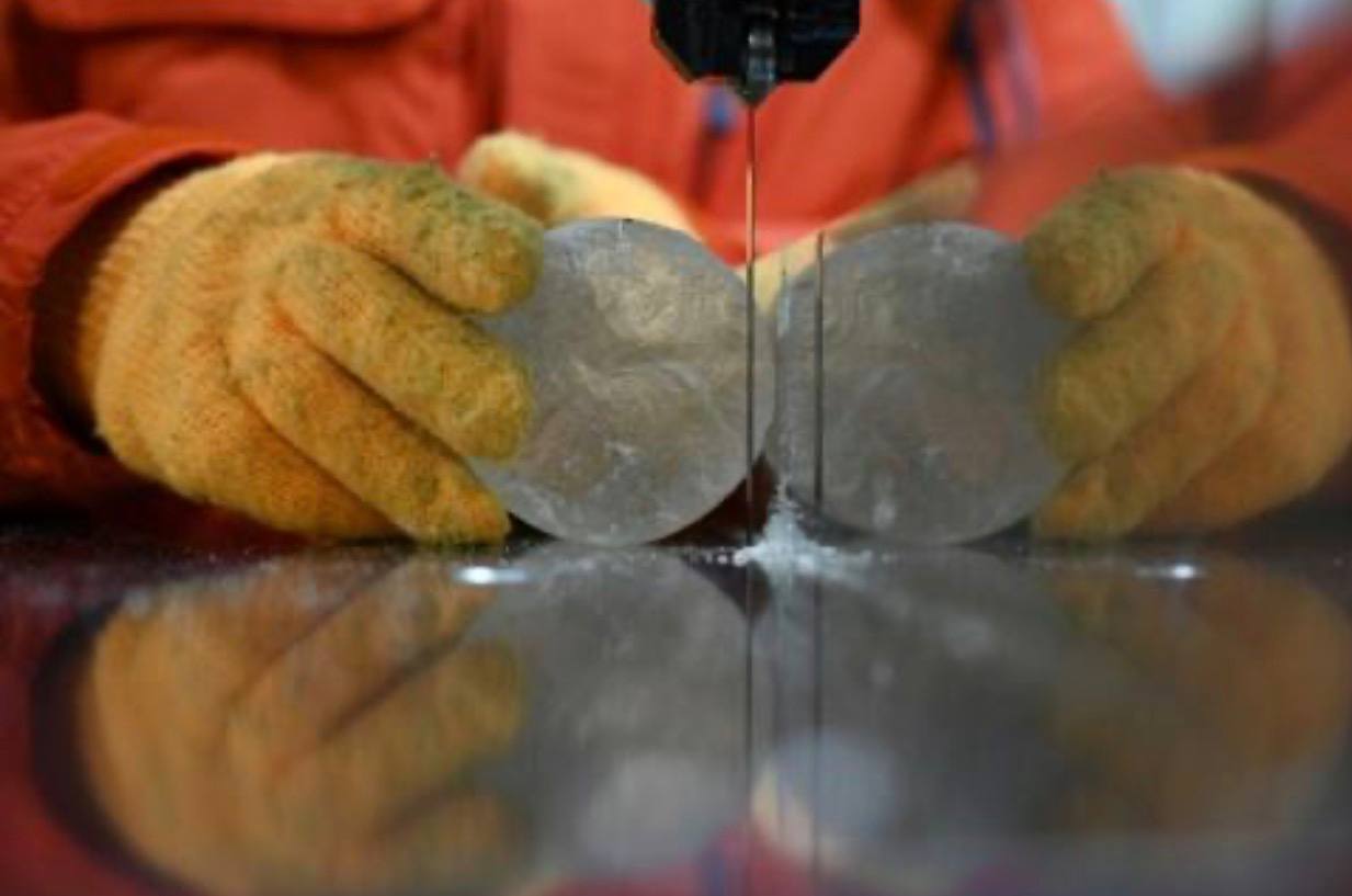 လိမ္မော်ရောင်အင်္ကျ ီကို ၀တ်ဆင်ထားသော ဂျပန်သိပ္ပံပညာရှင် Yoshinori Iizuka သည် ကျွမ်းကျင်သူများအား ကမ္ဘာ့ ပျောက်ကွယ်နေသော ရေခဲမြစ်များကို ကာကွယ်ရန် သူမျှော်လင့်ထားသည့် ရေခဲအူတိုင်ကို ထုတ်ယူရန် သိုလှောင်ရေခဲသေတ္တာထဲသို့ ဝင်ရောက်လာခဲ့သည်။