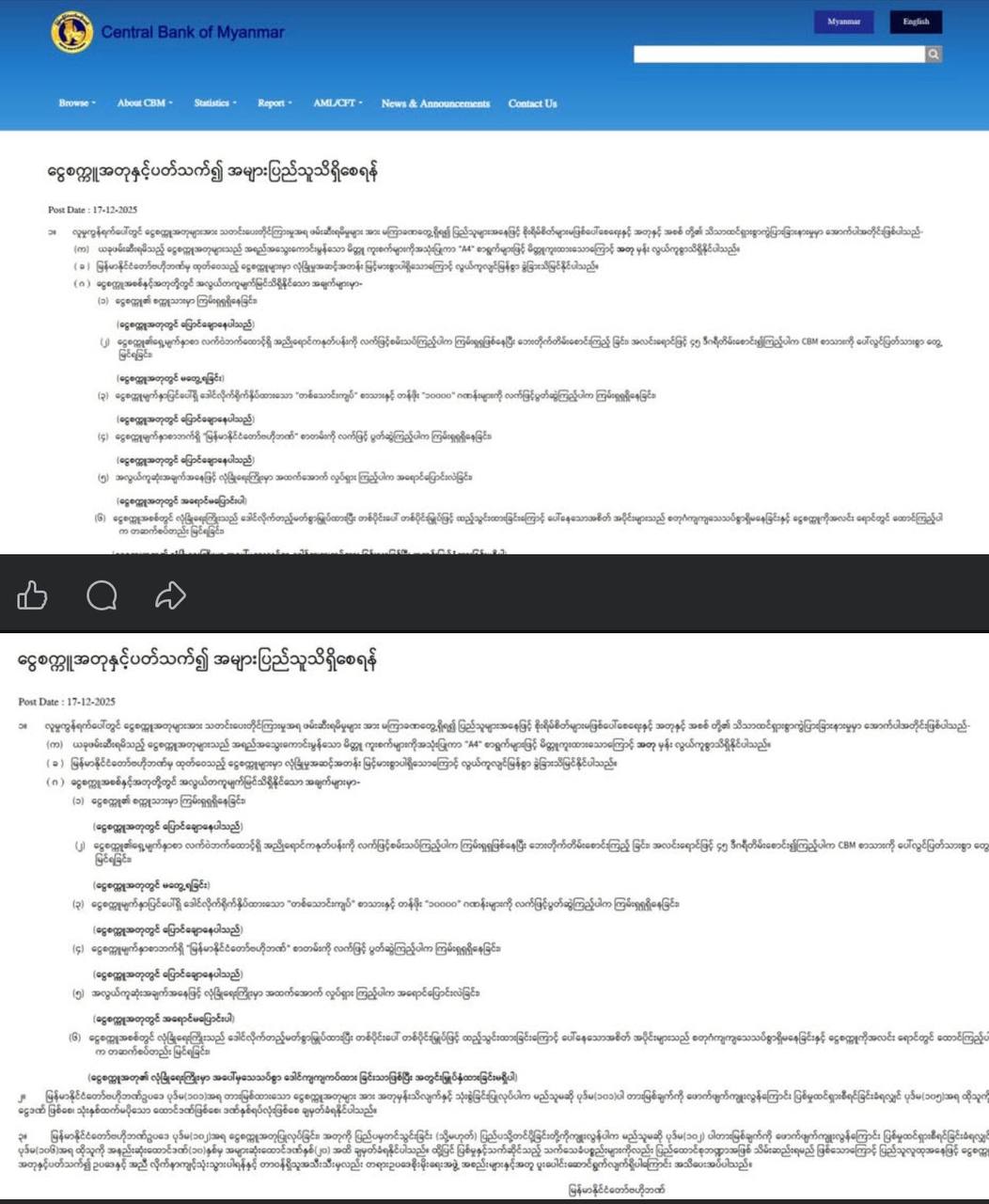 လူမှုကွန်ရက်ပေါ်တွင် ငွေစက္ကူအတုပြုလုပ်ရောင်းချသူများကို သတင်းပေးတိုင်ကြားချက်အရ ဖမ်းဆီးရမိခဲ့ကြောင်း ဗဟိုဘဏ်က ထုတ်ပြန်ထားသည်။ယခုဖမ်းဆီးရမိသည့် ငွေစက္ကူအတုများသည် အရည်အသွေးကောင်းမွန်သော မိတ္တူကူးစက်များကိုအသုံးပြုကာ "A4" စာရွက်များဖြင့် မိတ္တူကူးထားသောကြောင့် အတုမှန်း လွယ်ကူစွာသိရှိနိုင်ကြောင်း၊ မြန်မာနိုင်ငံတော်ဗဟိုဘဏ်မှ ထုတ်ဝေသည့် ငွေစက္ကူများမှာ လုံခြုံမှုအဆင့်အတန်း မြင့်မားစွာပါရှိသောကြောင့် လွယ်ကူလျင်မြန်စွာ ခွဲခြားသိမြင်နိုင်ကြောင်း သိရသည်။ငွေစက္ကူအစစ်နှင့်အတုတို့တွင် အလွယ်တကူမျက်မြင်သိရှိနိုင်သော အချက်များမှာ ငွေစက္ကူ၏ စက္ကူသားမှာ ကြမ်းရှရှရှိနေခြင်း၊ (ငွေစက္ကူအတုတွင် ပြောင်ချောနေပါသည်)၊ ငွေစက္ကူ၏ရှေ့မျက်နှာစာ လက်ဝဲဘက်ထောင့်ရှိ အညိုရောင်ကနုတ်ပန်းကို လက်ဖြင့် စမ်းသပ်ကြည့်ပါက ကြမ်းရှရှဖြစ်နေပြီး ဘေးတိုက်တိမ်းစောင်းကြည့်ခြင်း၊ အလင်းရောင်ဖြင့် ၄၅ ဒီဂရီတိမ်းစောင်း၍ကြည့်ပါက CBM စာသားကို ပေါ်လွင်ပြတ်သားစွာ တွေ့မြင်ရခြင်း၊ (ငွေစက္ကူအတုတွင် မတွေ့ရခြင်း)၊ ငွေစက္ကူမျက်နှာပြင်ပေါ်ရှိ ဒေါင်လိုက်ရိုက်နှိပ်ထားသော "တစ်သောင်းကျပ်" စာသားနှင့် တန်ဖိုး "၁၀၀၀၀" ဂဏန်းများကို လက်ဖြင့်ပွတ်ဆွဲကြည့်ပါက ကြမ်းရှရှရှိနေခြင်း၊၊ (ငွေစက္ကူအတုတွင် ပြောင်ချောနေခြင်း)၊ ငွေစက္ကူမျက်နှာစာဘက်ရှိ "မြန်မာနိုင်ငံတော်ဗဟိုဘဏ်" စာတမ်းကို လက်ဖြင့် ပွတ်ဆွဲကြည့်ပါက ကြမ်းရှရှရှိနေခြင်း၊(ငွေစက္ကူအတုတွင် ပြောင်ချောနေပါသည်)၊ လွယ်ကူဆုံးအချက်အနေဖြင့် လုံခြုံရေးကြိုးမှာ အထက်အောက် လှုပ်ရှားကြည့်ပါက အရောင်ပြောင်းလဲခြင်း၊ (ငွေစက္ကူအတုတွင် အရောင်မပြောင်းပါ)၊ ငွေစက္ကူအစစ်တွင် လုံခြုံရေးကြိုးသည် ဒေါင်လိုက်တည့်မတ်စွာမြှုပ်ထားပြီး တစ်ပိုင်းပေါ် တစ်ပိုင်းမြှုပ်ဖြင့် ထည့်သွင်းထားခြင်းကြောင့် ပေါ်နေသောအစိတ်အပိုင်းများသည် စတုဂံကျကျ သေသပ်စွာရှိမနေခြင်းနှင့် ငွေစက္ကူကိုအလင်းရောင်တွင် ထောင်ကြည့်ပါက တဆက်စပ်တည်း မြင်ရခြင်း၊ (ငွေစက္ကူအတု၏ လုံခြုံရေးကြိုးမှာ အပေါ်မှသေသပ်စွာ ဒေါင်ကျကျကပ်ထားခြင်းသာဖြစ်ပြီး အတွင်းမြှုပ်နှံထားခြင်းမရှိပါ) ကြောင်း ခွဲခြားပြထားသည်။မြန်မာနိုင်ငံတော်ဗဟိုဘဏ်ဥပဒေ ပုဒ်မ (၁၀၁) အရ တားမြစ်ထားသော ငွေစက္ကူအတုများအား အတုမှန်းသိလျက်နှင့် သုံးစွဲခြင်းပြုလုပ်ပါက မည်သူမဆို ပုဒ်မ (၁၀၁) ပါ တားမြစ်ချက်ကို ဖောက်ဖျက်ကျူးလွန်ကြောင်း ပြစ်မှုထင်ရှားစီရင်ခြင်းခံရလျှင် ပုဒ်မ (၁၀၅) အရ ထိုသူကို ငွေဒ-ဏ်ဖြစ်စေ၊ သုံးနှစ်ထက်မပိုသော ထောင်ဒ-ဏ်ဖြစ်စေ၊ ဒ-ဏ်နှစ်ရပ်လုံးဖြစ်စေ ချမှတ်ခံရနိုင်ပါသည်။ထို့ပြင် ပြစ်မှုနှင့်သက်ဆိုင်သည့် သက်သေခ