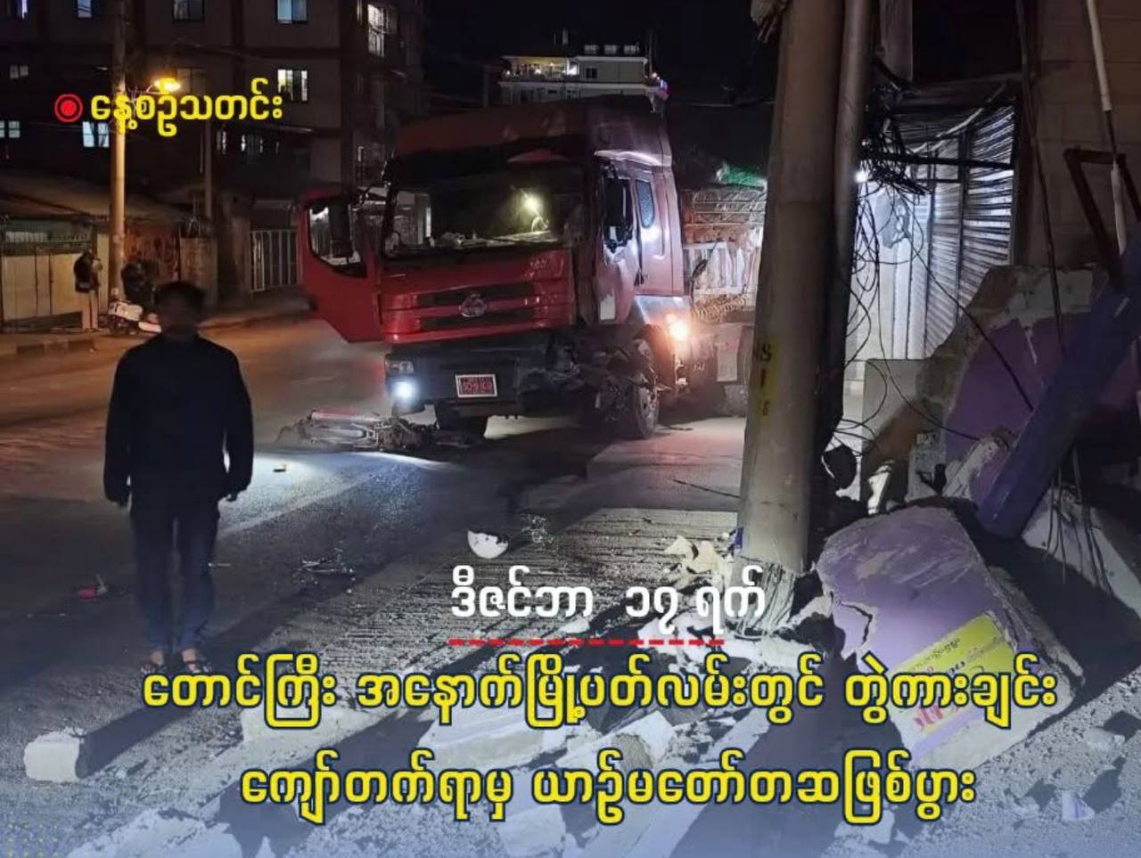ရှမ်းပြည်နယ်တောင်ပိုင်း တောင်ကြီးမြို့ အနောက်မြို့ပတ်လမ်း သုံးလမ်းစုံအနီးတွင် ဒီဇင်ဘာလ (၁၆)ရက် ညနေပိုင်းအချိန် တွဲကားချင်း ကျော်တက်မောင်းနှင်ရာမှ ယာဉ်တိုက်မှု ဖြစ်ပွားခဲ့သည်။ယခုတလော အနောက်မြို့ပတ်လမ်းတွင် တွဲကားမောင်းသူတချို့ စည်းကမ်းမဲ့ အရှိန်မြင့်စွာ မောင်းနှင်နေကြောင်း သိရပြီး၊ ယာဉ်မတော်တဆမှု ဖြစ်နိုင်ခြေရှိခြင်းကြောင့် ဒေသခံများ စိုးရိမ်နေကြသည်။တောင်ကြီးမြို့နှင့် ရှမ်းပြည်နယ် တောင်ပိုင်းတစ်ဝန်းလုံးတွင် ယာဉ်မတော်တဆမှုများနှင့် အရှိန်မထိန်းဘဲ မောင်းနှင်မှုများကြောင့် လမ်းပေါ် အန္တရာယ်အခြေအနေများ မကြာခဏ ဖြစ်ပွားနေကြောင်းသိရပါသည်။