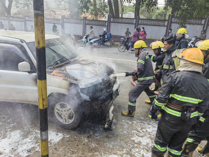 ၁၈.၁၂.၂၀၂၅ ရက်နေ့၊ ၁၁နာရီ ၀၅ မိနစ်အချိန်၊ ရှမ်းပြည်နယ်၊ ကျိုင်းတုံမြို့၊ ရပ်ကွက် (၂)၊ မိုင်တိုင်အမှတ် (၃၉၄/၄)နှင့် (၃၉၄/၅) အကြားတွင် ယာဉ်(၁)စီး မီးလောင်မှုဖြစ်ပွားကြောင်း သတင်းရရှိသဖြင့် ကျိုင်းတုံခရိုင်/မြို့နယ်မီးသတ်စခန်းမှ မီးငြှိမ်းသတ်ယာဉ်(၁)စီး၊ သန္ဓေမီးသတ်တပ်ဖွဲ့ဝင်များ၊ အရန်မီးသတ်တပ်ဖွဲ့ဝင်များဖြင့် ထွက်ခွာငြှိမ်းသတ်ခဲ့ရာ ၁၁ နာရီ၁၁ မိနစ်အချိန်တွင် မီးငြိမ်းပါသည်။