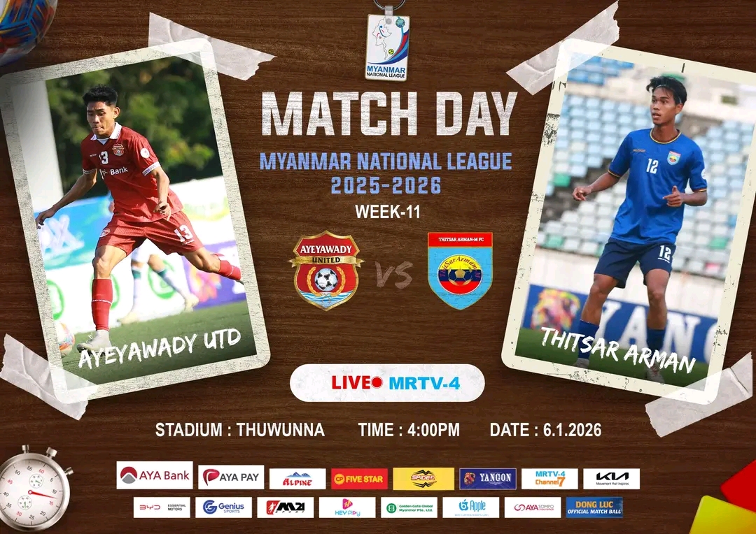 Week-11အဖြစ်ဧရာဝတီယူနိုက်တက်အသင်းနဲ့-သစ္စာအားမာန်အသင်းတို့ဟာယနေ့ညနေ6-1-2026