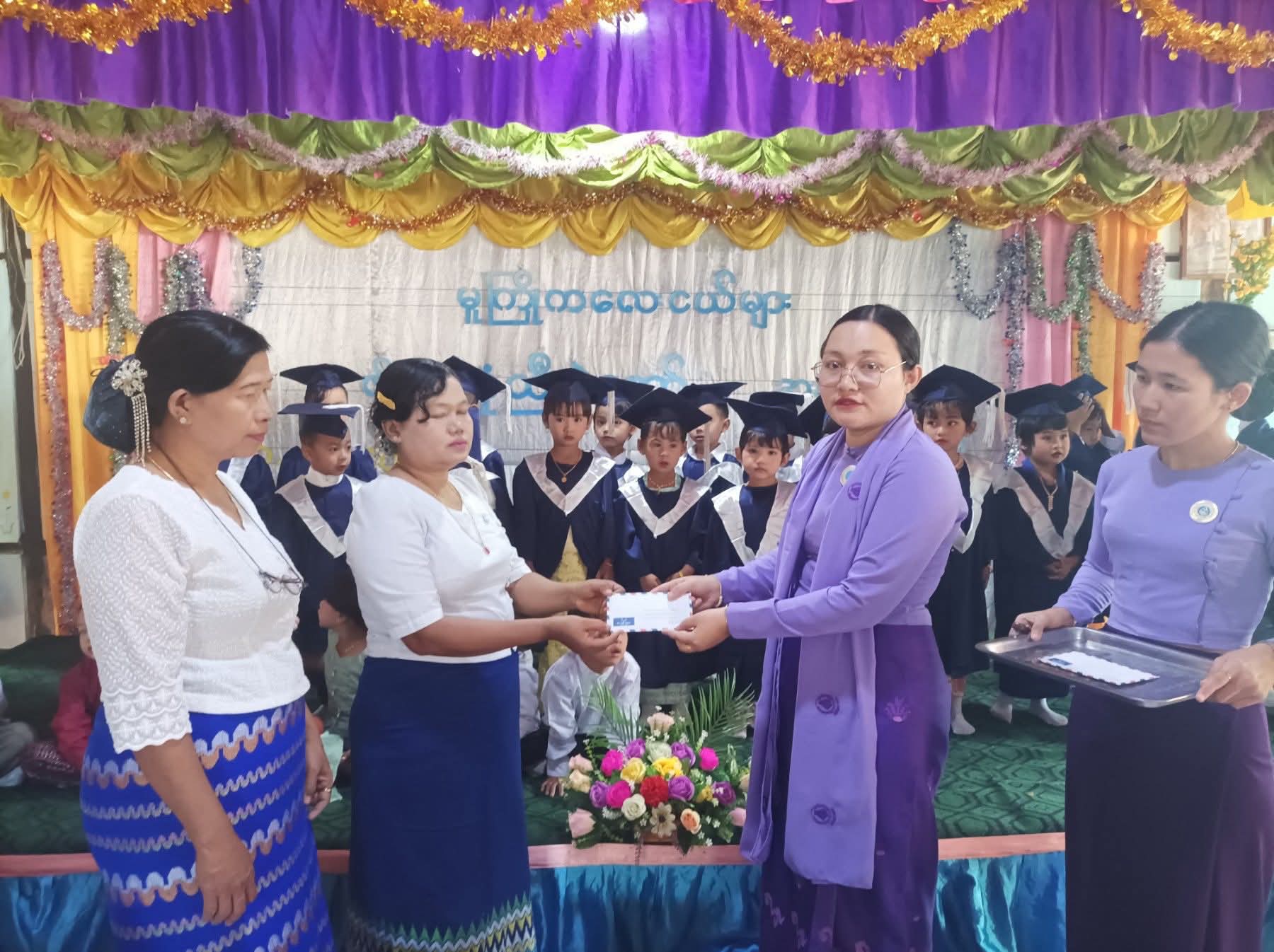 ဆက်လက်ပြီး မြို့နယ်စီမံခန့်ခွဲရေးနှင့် အုပ်ချုပ်ရေးကော်မတီ ဥက္ကဋ္ဌ က အဖွင့်အမှာစကားပြောကြားပြီး သားငယ်၊ သမီးငယ်လေးများက တက်ရောက်လာကြသော မိခင်နှင့်ကလေးစောင့်ရှောက်ရေးအသင်းအဖွဲ့ဝင်များ၊ မူကြိုဆရာမများနှင့် မိဘပြည်သူများအား မူကြိုကျောင်း သားငယ်၊ သမီးငယ်များက ချစ်သတိပြု၊ လူပျိုထောင်း၊ ညမွှေးပန်း၊ ပူတူတူးလေး စသည်တို့ဖြင့်ကပြဖျော်ဖြေခဲ့ကြကြောင်း သိရသည်။ထို့နောက် မိခင်နှင့်ကလေးစောင့်ရှောက်ရေးအသင်းအလင်းရတနာကိုယ့်အားကိုယ်ကိုးမူလတန်းကြိုကျောင်းဆရာမများအား မိခင်နှင့်ကလေးစောင့်ရှောက်ရေးအသင်းအဖွဲ့ဝင်ဒေါ်ငြိမ်းမေနှောင်းက ဂုဏ်ပြုဆုငွေများပေးအပ်ခဲ့ပြီး မူကြိုသားငယ်၊သမီးငယ်များအား မိခင်နှင့်ကလေးစောင့်ရှောက်ရေးအသင်းအဖွဲ့ဝင်များ၊ မိဘပြည်သူများက လက်ဆောင်ပစ္စည်းများ ပေးအပ်ခဲ့ကြကြောင်း သိရသည်။