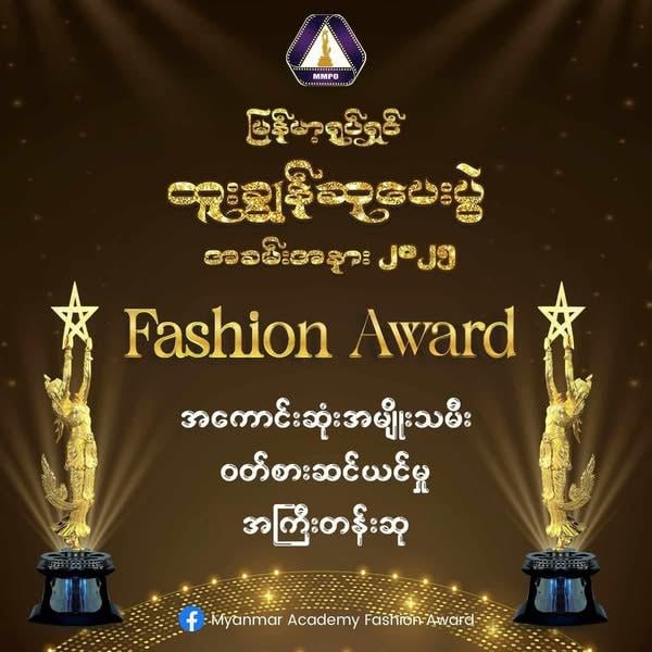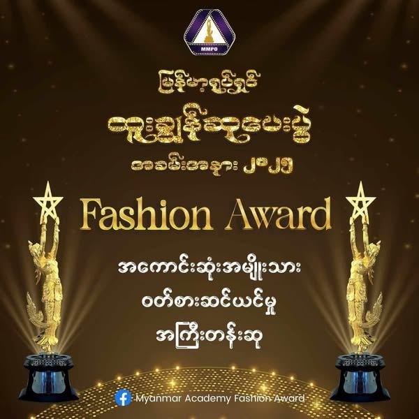 ၂၀၂၄ ခုနှစ်များအတွက် မြန်မာ့ရုပ်ရှင် ထူးချွန်ဆု ချီးမြှင့်ပွဲတွင် ပွဲတက်ရောက်လာသော မြန်မာ့ရုပ်ရှင် အနုပညာရှင်လေးဦးကို Fashion Award ဆု ပေးအပ်သွားမှာဖြစ်တယ်လို့ မြန်မာ့ရုပ်ရှင် အစည်းအရုံးမှ သိရပါတယ်။ပထမဆုံး ချီးမြှင့်ပေးသွားမယ့် “MYANMAR ACADEMY FASHION AWARD / မြန်မာ့အကယ်ဒမီဖက်ရှင်ဆု” များကတော့-