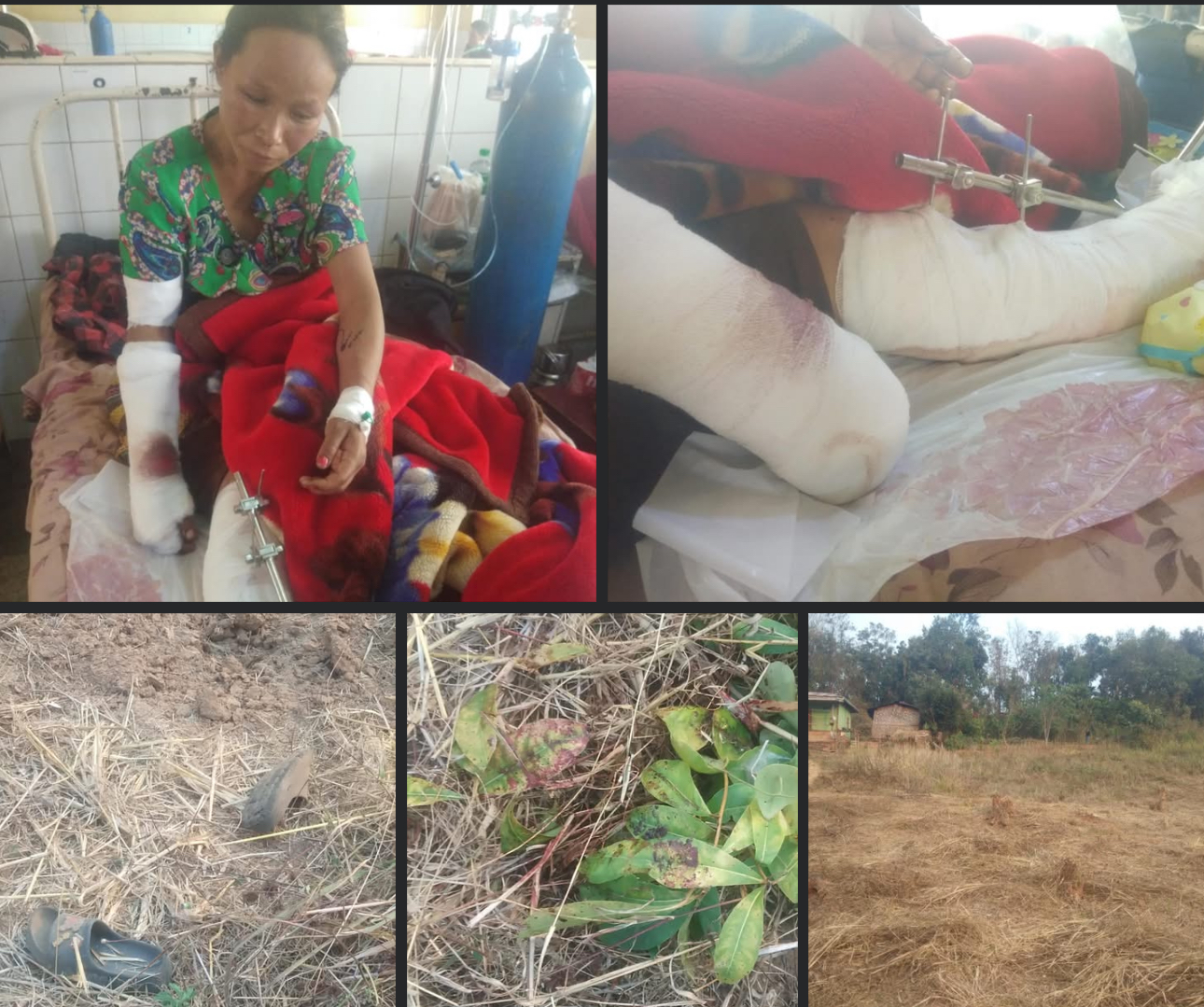 မနေ့က မတ်လ ၉ ရက် ညနေ ၃ နာရီ ဝန်းကျင်မှာ လားရှိုးမြို့နယ် ကြာကန်နောင်လိုင် (ခ) နောင်မိုကျေးရွာက အသက် (၃၀) ဝန်းကျင်အရွယ် အမျိုးသမီးဒေါ်အမ်ခေါဝ်တစ်ဦးဟာ ခြံရှင်းနေရင်း မပေါက်ကွဲသေးတဲ့ စစ်ကျန်လက်နက်ကို ပေါက်ပြားနဲ့ ပေါက်မိတာကြောင့် ပေါက်ကွဲမှုဖြစ်ပြီး ခန္ဓာကိုယ်တစ်ခုလုံး အပြင်းအထန် ဒဏ်ရာရခဲ့ကြောင်း အစ်မဖြစ်သူရဲ့ ပြောပြချက်အရ သိရပါသည်။၎င်းအမျိုးသမီးဟာ ခြေထောက်၊ လက်နဲ့ မျက်နှာက ဒဏ်ရာတွေကြောင့် ဒီနေ့ မတ်လ ၁၀ ရက်အထိတော့ လားရှိုးပြည်သူ့ဆေးရုံမှာ ကုသမှုခံယူနေရတယ်လို့ သိရပါသည်။