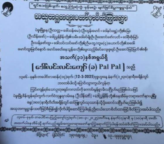 11.3.2025ရက်နေ့ ပဲခူးမြို့ စိန်ထွန်းရပ်ကွက် လက်ဝဲသုန္နလမ်းတွင် မိန်းမဖြစ်သူမလင်းလင်းေကျာ် အသက်၃၁နှစ်မှာ လင်ယောက်ျားနဲ့အချင်းများရာမှလှေကားမှပြုတ်ကျ၍ ခါးရိုးကျိုးခဲ့ပြီး၊ ပဲခူးဆေးရုံအရောက်တွင် သေဆုံးသွားခဲ့ပါတယ်။