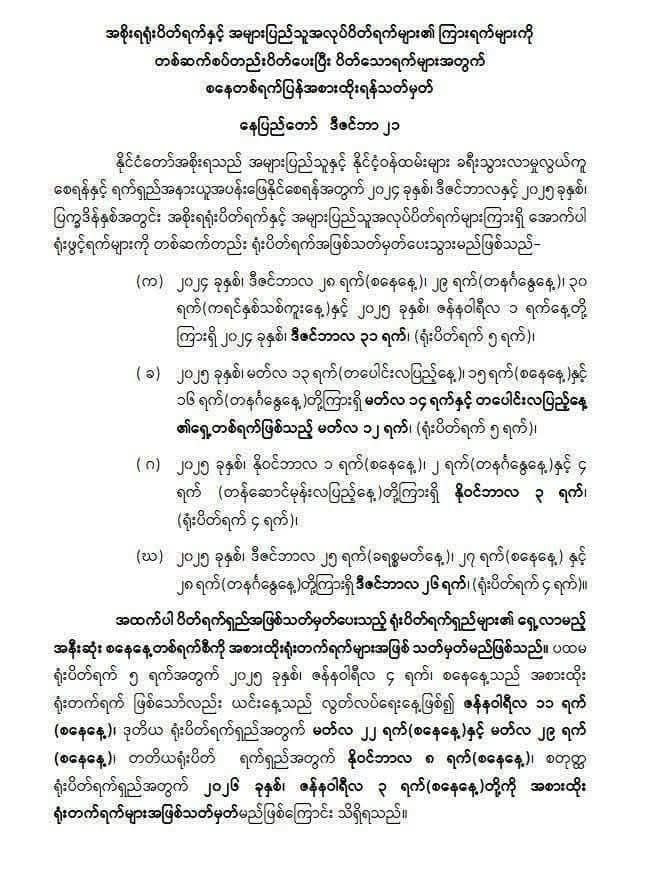 ယနေ့ မတ် ၁၂ ရက်မှစတင်ကာ တပေါင်းလပြည့်နေ့ ရုံးပိတ်ရက်ရှည်ကြောင့် ခရီးသွားသူများတိုးပွားလာပြီး အမြန်လမ်း ဇီးရိုးမိုင်မှစတင်ကာ ယာဉ်ထိန်သိန်နေကြောင်း သိရသည်။ မတ် ၁၂ မှ ၁၆ ရက်အထိ (၅) ရက်တိုင်တည်း ရုံးပိတ်ခြင်းကြောင့် အလုပ်သမားများ ဇာတိသို့ပြန်ခြင်းနှင့် အပန်းဖြေခရီးသွားသူများများပြားလာသည်။ ထို့အပြင် ကျောင်းသားအချို့သည် နွေရာသီပိတ်ရက်နှင့် တိုက်ဆိုင်သဖြင့် ခရီးသွားမှု ပိုမိုကြွယ်ဝလာကြောင်းသိရသည်။