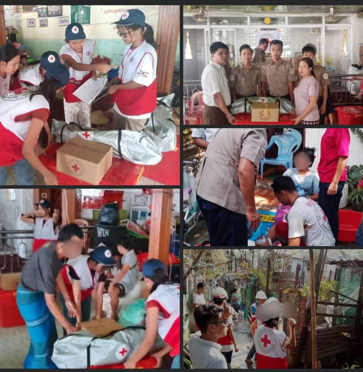 ရန်ကုန်တိုင်းဒေသကြီး၊ အင်းစိန်မြို့နယ်၊ အောင်ဆန်းရပ်ကွက်၊ ရွှေပင့်ကူလမ်းတွင် မတ်လ(၆)ရက်နေ့က နေအိမ်မီးလောင်မှုဖြစ်ပွားခဲ့ရာ ထိခိုက်ခံစားရသော အိမ်ထောင်စု (၁၄)စုအတွက် မိသားစုသုံးပစ္စည်းများ၊ တစ်ကိုယ်ရည်သန့်ရှင်းရေးသုံးပစ္စည်းများ၊ အမျိုးသမီးတစ်ကိုယ်ရည်သန့်ရှင်းရေးသုံးပစ္စည်းများ၊ မီးဖိုချောင်သုံးပစ္စည်းများ၊ စောင်၊ တာပေါ်လင်နှင့် အိမ်ဆောက်အထောက်အကူပြုပစ္စည်းများစသည့်အသုံးအဆောင်ပစ္စည်းများကို အင်းစိန်မြို့နယ်ကြက်ခြေနီအသင်းခွဲမှ ကြက်ခြေနီစေတနာလုပ်အားရှင်များက ထောက်ပံ့ကူညီပေးခဲ့ပါသည်။
