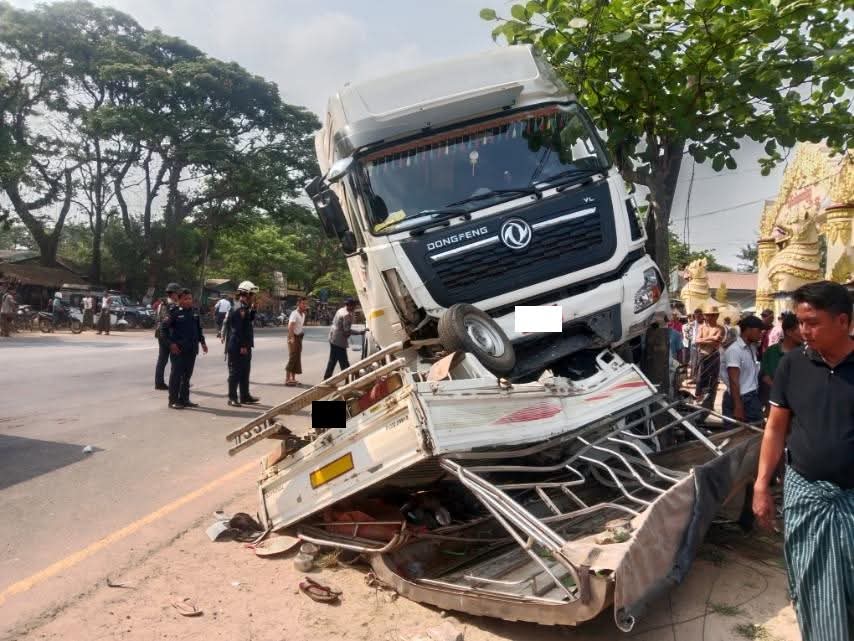 ပဲခူးတိုင်းဒေသကြီး၊ ပဲခူးမြို့နယ်၊ ဘုရားကြီးနယ်မြေ၊ ဝမ်းဘဲအင်းကျေးရွာ၊ ရန်ကုန်-မန္တလေးလမ်းဟောင်းတွင် ဆီဘောက်ဆာနှင့် Townace ယာဉ် တိုက်မိမှုဖြစ်ပွား