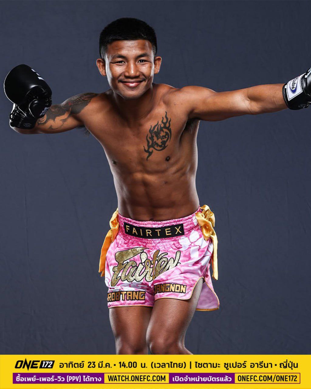 ONE 172 ၏ ခေါင်ပွဲဖြစ်သည့် ဖလိုင်းဝိတ်ကစ်ဘောင်ဆင်ပွဲစဉ်တွင် မွေထိုင်းကစားသမား ရော့ထန်က ဂျပန်ကစားသမား တာခဲရုကို ပထမအချီ တစ်မိနစ် ၂၀ စက္ကန့်တွင် အလဲထိုးဖြင့် အနိုင်ရခဲ့သည်။ရော့ထန်(၂၇ နှစ်)သည် ONE လက်အောက်တွင် ၁၉ ပွဲထိုးသတ်ရာ ၁၇ ပွဲနိုင်၊ ၂ ပွဲရှုံးမှတ်တမ်း ရရှိခဲ့သည်။တာခဲရု(၃၃ နှစ်)မှာမူ ONE သုံးပွဲထိုးသတ်ရာတွင် မြန်မာလက်ဝှေ့သမား သန့်ဇင်တစ်ဦးကိုသာ အနိုင်ရခဲ့ပြီး ဆူပါလက်ခ်နှင့် ရော့ထန်တို့ကို အရေးနိမ့်ခဲ့ခြင်းဖြစ်သည်။