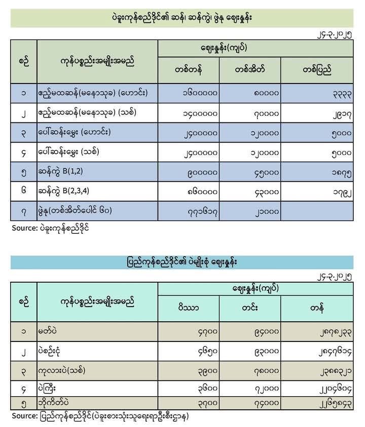 ပဲခူးကုန်စည်ဒိုင်၊ ပြည်ကုန်စည်ဒိုင်တို့၏ (၂၄.၃.၂၀၂၅)ရက်နေ့ ဆန်နှင့်ပဲမျိုးစုံဈေးနှုန်းများ