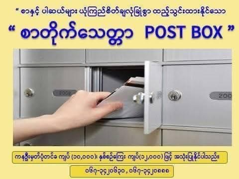 လိပ်စာတွင် အတည်အကျနေထိုင်ခြင်းမရှိသူများနှင့် စာ/ပါဆယ်လက်ခံရန် အဆင်မပြေသူများအတွက် စာတိုက် (၁၄၉)ရုံးတွင် စာတိုက်သေတ္တာများထားရှိပေးထားသည်ဟု ပို့ဆောင်ရေးနှင့် ဆက်သွယ်ရေးဝန်ကြီးဌာန၊ မြန်မာ့စာတိုက်လုပ်ငန်းက အသိပေးထားသည်။အသုံးပြုလူသူများအနေဖြင့် ကနဦးမှတ်ပုံတင်ခ ကျပ်(၁၀,၀၀၀)ပေးသွင်းရမည်ဖြစ်ကာ နှစ်စဉ်ကြေးအဖြစ် ကျပ် (၁၂,၀၀၀)ပေးဆောင်ရမည်ဖြစ်ကြောင်း သိရသည်။ထိုသို့ စာတိုက်သေတ္တာငှားရမ်းခြင်းဝန်ဆောင်မှုသည် လိပ်စာတွင် အတည်အကျနေထိုင်ခြင်းမရှိသူများ၊ လိပ်စာတွင် စာ/ပါဆယ်လက်ခံရန် အဆင်မပြေသူများ၊ အချိန်မရွေးကိုယ်တိုင်ထုတ်ယူနိုင်ခြင်း၊ ပုဂ္ဂိုလ်ရေးဆိုင်ရာလုံခြုံမှုရှိခြင်း၊ သက်တမ်းရှိသည့် ကာလအတွင်း ရက်အကန့်အသတ်မရှိ ထုတ်ယူနိုင်ခြင်း၊ ရပ်နီးရပ်ဝေး နေရာအသီးသီးမှ ပေးပို့လာသည့် စာ/ပါဆယ်များကို စုစည်းထုတ်ယူနိုင်မည်ဖြစ်သည်ဟု အသိပေးချက်တွင် ပါရှိသည်။