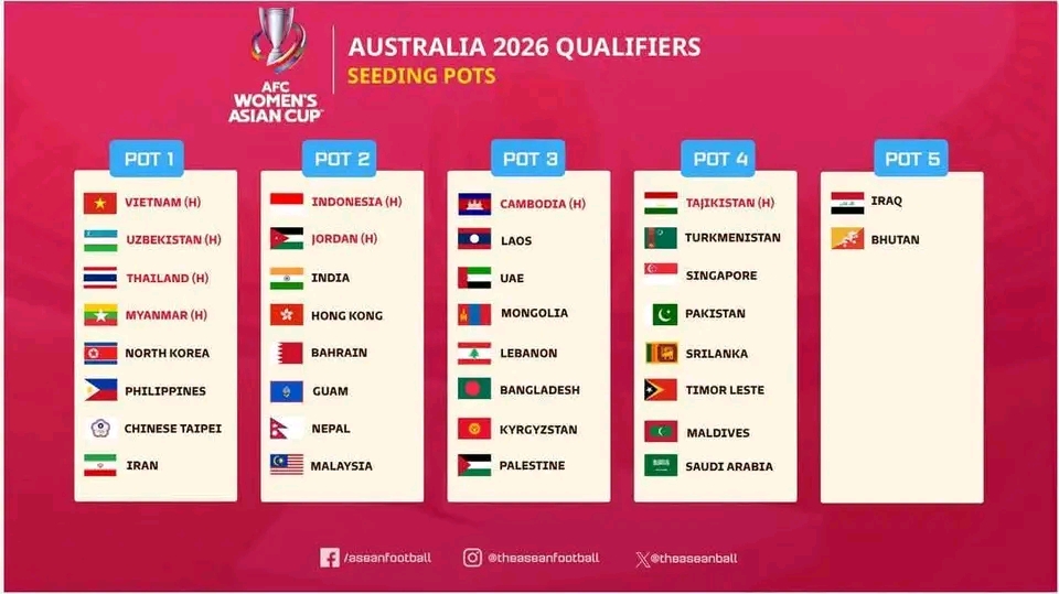 မြန်မာနိုင်ငံအိမ်ရှင်အဖြစ်လက်ခံမယ့် အာရှအမျိုးသမီး ချန်ပီယံရှစ် Asian Cup 2026 ခြေစစ်ပွဲကို မနက်ဖြန် (၂၇.၃.၂၀၂၅) မှာ မဲနှိုက်မှာဖြစ်ပါတယ်။ မဲနှိုက်ပြီး ဇွန်လမှာ ကစားရ မှာဖြစ်ကာအဆိုပါပြိုင်ပွဲတွင်အသင်းပေါင်း 34 သင်း ၀င်ရောက်ယှဥ်ပြိုင်ပြီး စုစုပေါင်း (၈) အုပ်စုမှ အုပ်စုပထမ (၈)သင်းဟာ ခြေစစ်ပွဲအောင်ရမည်ဖြစ်ကာမြန်မာအမျိုးသမီးအသင်းမှလက်ရွေးစင် အားကစားသမား မေထက်လူလည်း လာရောက်ကစားနိုင်မည်ဟု သိရပါတယ်။