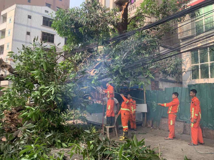 ရန်ကုန်တိုင်းဒေသကြီး၊ ကြည့်မြင်တိုင်မြို့နယ်၊ သီတာရပ်ကွက်၊ အောက်ကြည့်မြင်တိုင်လမ်းတွင် သစ်ပင်လဲကျမှုဖြစ်ပွား