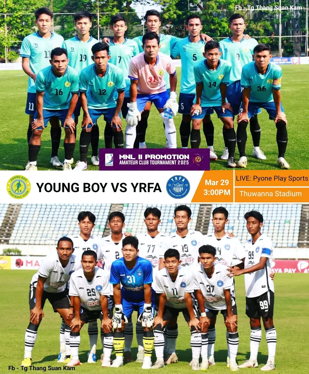 မတ်လ ၂၉ ရက်နေ့မှာမြန်မာနေရှင်နယ်လိဂ် ၂ သို့တန်းတက်နိုင်ခဲ့တဲ့ နှစ်သင်းရဲ့ ဗိုလ်လုပွဲကို ယှဉ်ပြိုင်ကစားမှာဖြစ်ပါတယ်။ Young Boy အသင်းနဲ့Vs YRFAအသင်းတို့ဟာ29.3.2025ရက်နေ့3:00PMညနေ့တွင်Thuwanna Stadium မှာယှဉ်ပြိုင်ကစားသွားမှာဖြစ်ပါတယ်။