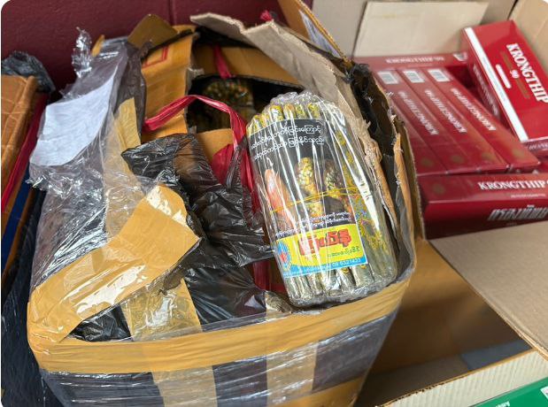 ထိုင်း-မြန်မာနယ်စပ် ကန်ကျနပူရီခရိုင်၊ ဆန်ခလပူရီမြို့ထဲမှာ ဘတ် ၁၀ သန်း တန်ဖိုးရှိ အကောက် ခွန်မဲ့ တရုတ်နိုင်ငံထုတ် စီးကရက်နဲ့ မြန်မာဆေးပေါ့လိပ်တွေ ဖမ်းဆီးရမိတယ်လို့ ကန်ကျနပူရီ ဒေသတွင်းသတင်းမှာ ဖော်ပြပါတယ်။