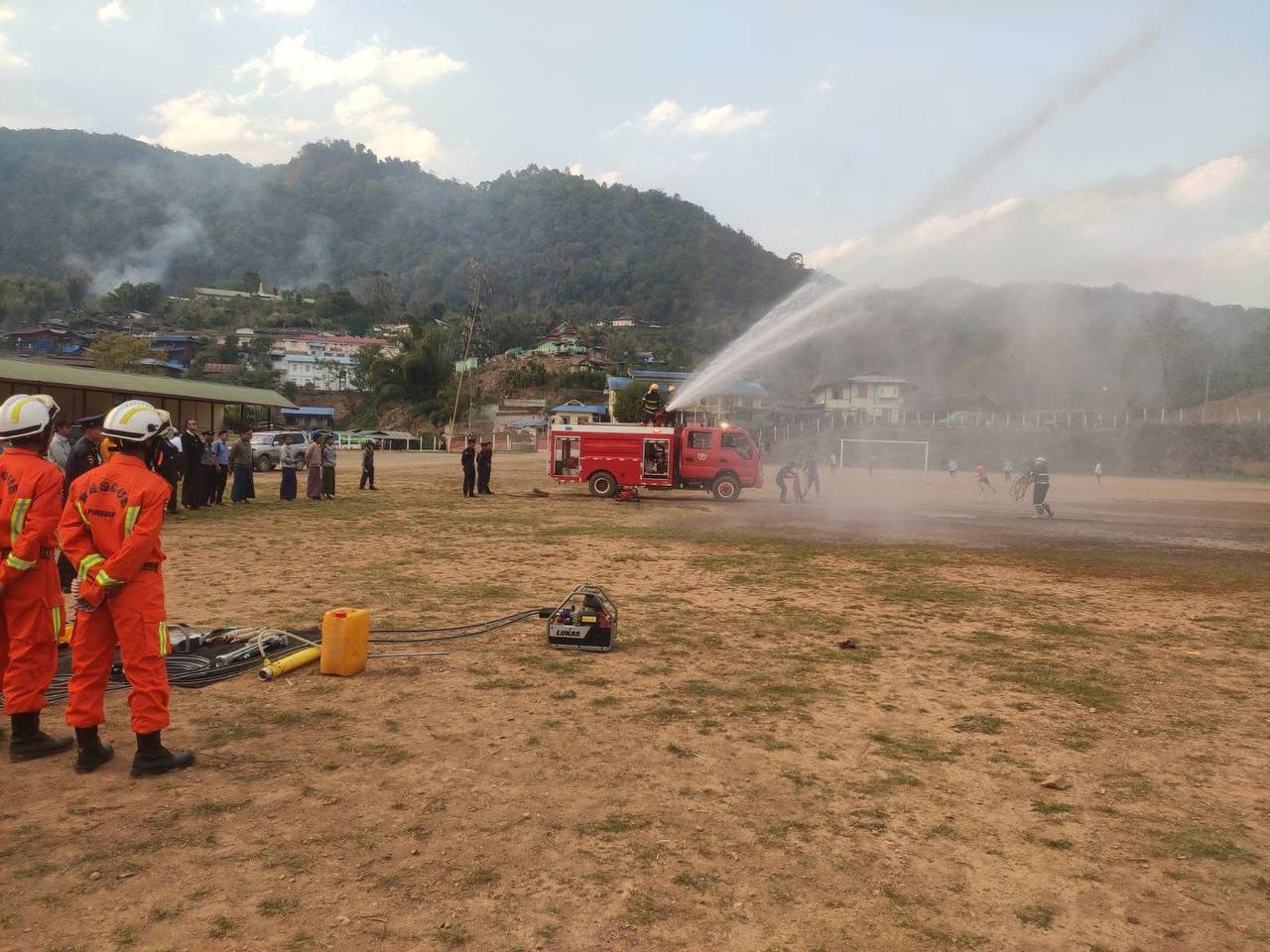 စစ်ကိုင်းတိုင်းဒေသကြီး၊နာဂကိုယ်ပိုင်အုပ်ချုပ်ခွင့်ရဒေသ၊လဟယ်မြို့တွင်မီးဘေးအန္တရာယ်ကြိုတင်ကာကွယ်တားဆီးရေးဇတ်တိုက်လေ့ကျင့်ခြင်းနှင့်သရုပ်လေ့ကျင့်ခြင်းကို ယမန်နေ့ညနေ ပိုင်း (၁၆:၀၀)နာရီအချိန်လဟယ်မြို့ ရွှေပြည်သာအားကစားကွင်း၌ပြုလုပ်သည်။မီးသတ်တပ်ဖွဲ့ဝင်အရာထမ်း အမှုထမ်းများက သဘာ၀ဘေးနှင့်မီးဘေးအန္တရာယ် ကြုံတွေ့လာပါကရှာဖွယ်ကယ်ဆယ်ရေးနှင့် မီးငြိမ်းသတ်ခြင်းကိုလက်တွေ့သရုပ်ပြလေ့ကျင့်ပြသပြီးသဘာဝဘေးအန္တရာယ်ဆိုင်ရာ ကြုံလျှင်အသုံးပြုသည့် ဆက်စပ်ပစ္စည်းများလက်တွေ့ပြသခဲ့ရာတက်ရောက်ကြသော နာဂဦးစီးအဖွဲဝင်များနှင့်ဒေသ/မြို့နယ်အဆင့်ဌာနဆိုင်ရာများကကြည့်ရှုပါသည်။