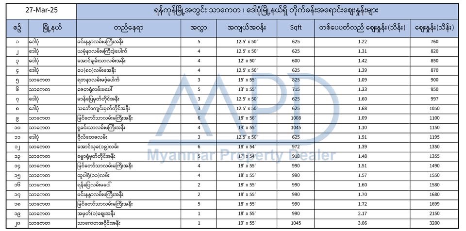 ရန်ကုန်မြို့ရှိ လုံးချင်းအိမ်နှင့်မြေကွက်ကျယ်စျေးနူန်းများကို စိတ်ဝင်စားနေတဲ့လူကြီးမင်းများအတွက် ရန်ကုန်မြို့တွင်းရှိ အိမ်ခြံမြေဈေးကွက်ပေါ်မှ ကောက်ယူရရှိထားတဲ့ လုံးချင်းအိမ်နှင့်မြေကွက်ကျယ်အရောင်းစျေးနူန်းများ