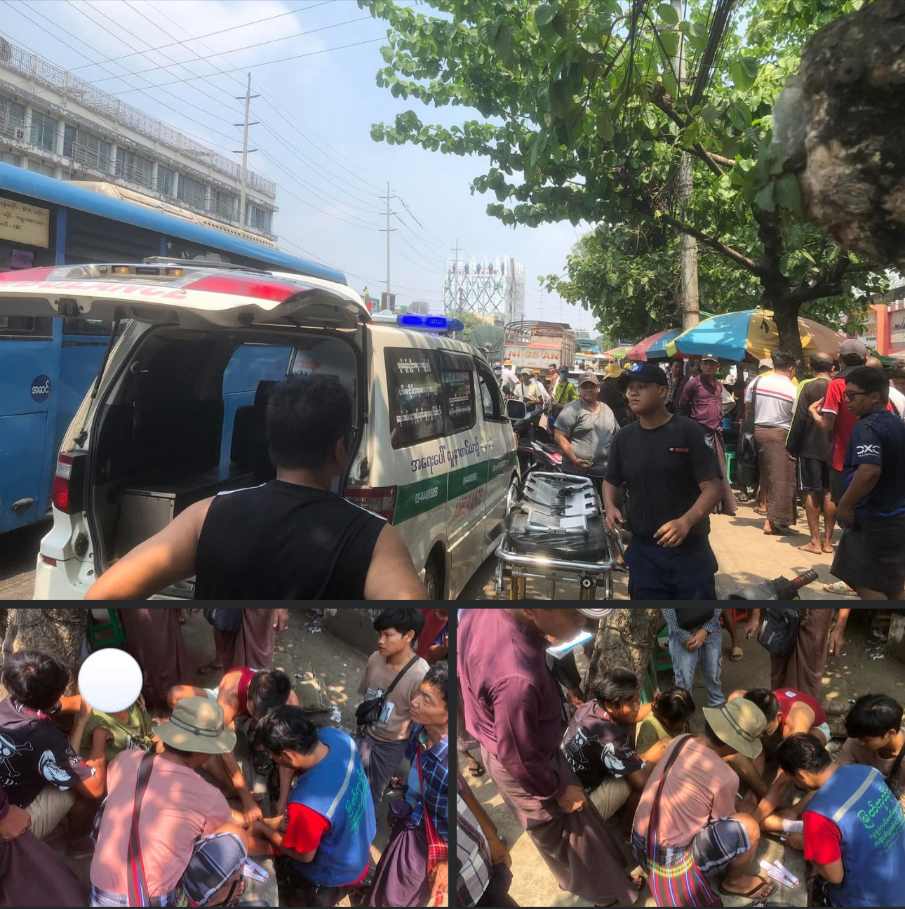 27.3.2025 နံနက် (11:00)အချိန်ခန့်တွင်ရန်ကုန်တိုင်းဒေသကြီး၊ မရမ်းကုန်းမြိုနယ် ၊ကံကော်လမ်းမကြီးထိပ်၊ ဘုရင့်နောင်လမ်းမကြီး တွင်ကားနှင့်စက်ဘီးတိုက်ထားပြီးလူနာ(၁)ဦးရှိနေပြီဖြစ်စဥ်နေရာသို့သွားရောက်ကာ မနှင်းအိလဲ့ထွန်း အသက် (၂၄)နှစ် ညာခြေထောက်အရိုးကျိုး( အဝါရောင်အဆင့်) လူနာအားမြေပြင်ပြုစုကုသပေးပြီး