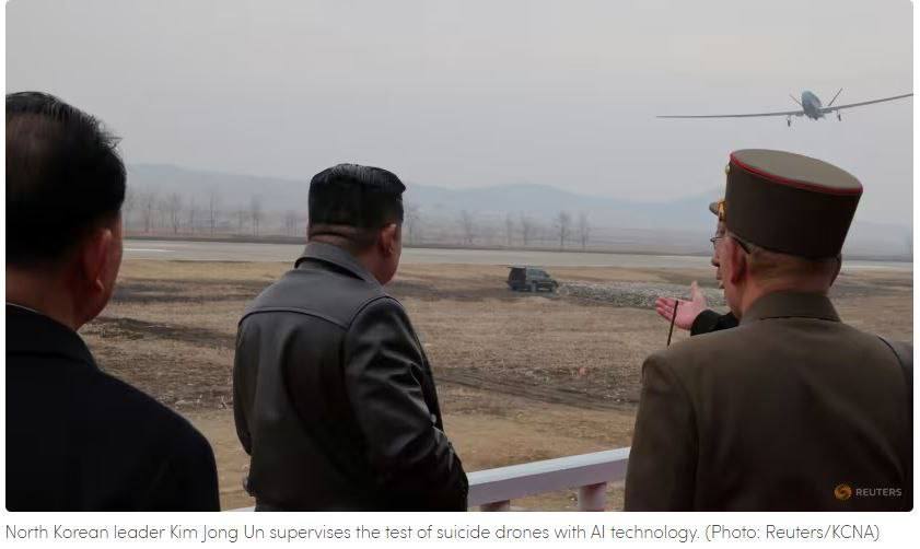မြောက်ကိုရီးယားခေါင်းဆောင် ကင်မ်ဂျုံအန်းသည် AI ဖြင့် အေ-သခံဒရုန်းများစမ်းသပ်မှုကို စစ်ဆေးကြည့်ရှုခဲ့ပြီး အဆိုပါနည်းပညာနှင့်စွမ်းရည်သည် ခေတ်မီလက်နက်များ ဖွံ့ဖြိုးတိုးတက်ရေးတွင် ထိပ်တန်းဦးစားပေးဖြစ်ကြောင်းလည်းပြောကြားခဲ့သည်။