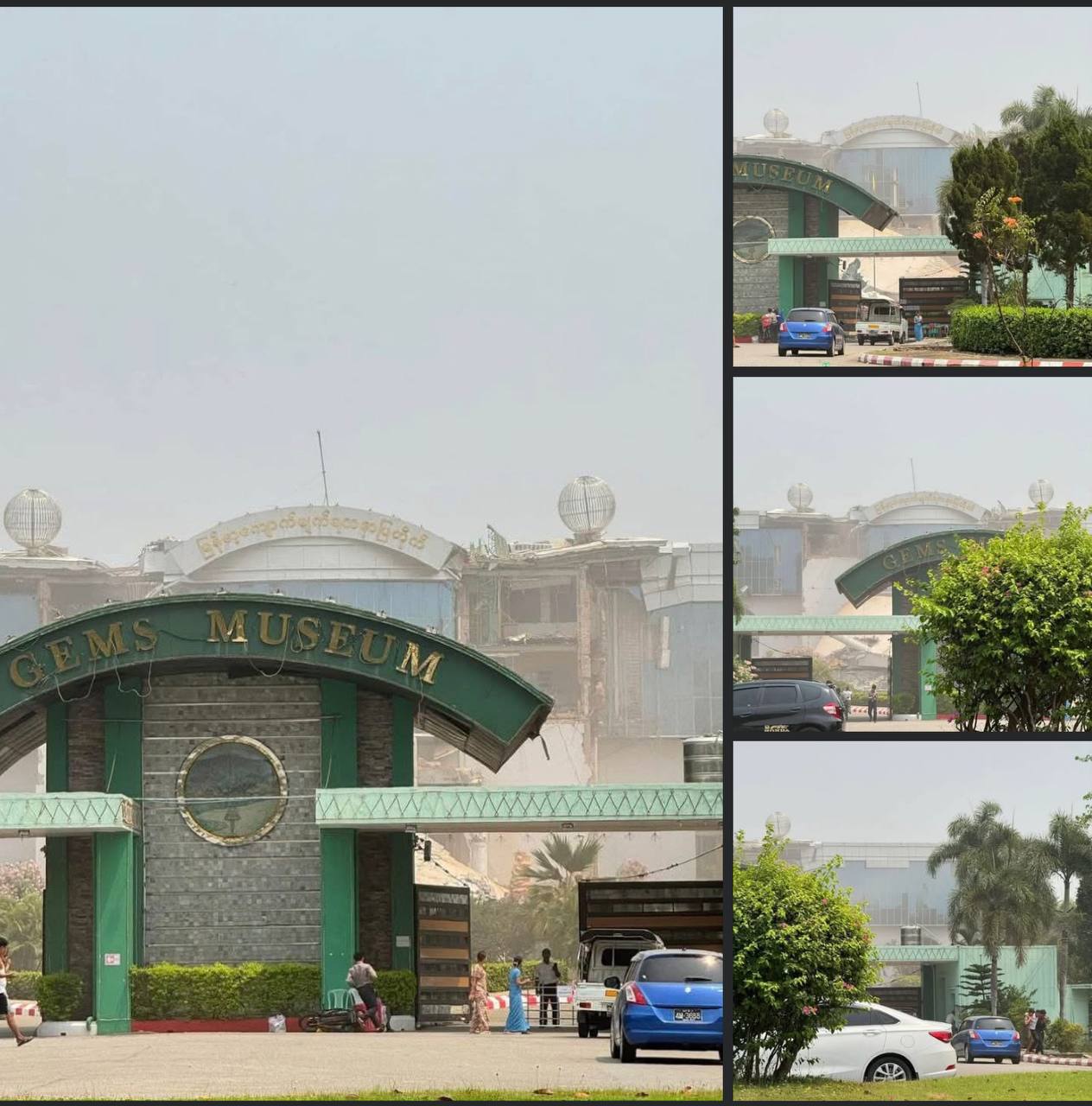 ယနေ့ နေ့လယ် (၁၂)နာရီ (၄၀)မိနစ် ဝန်းကျင်က လှုပ်ခတ်ခဲ့သည့် ပြင်အား ၇.၇ အဆင့်ရှိ အင်အားပြင်း ငလျင်ကြောင့် နိုင်ငံတစ်ဝန်း ပျက်စီးဆုံးရှုံးမှုကြီးမားခဲ့သည်။အဆိုပါ ငလျင်ကြောင့် နေပြည်တော်၌လည်း အပျက်အစီးများခဲ့ပြီး ကျောက်မျက်ရတနာ ပြတိုက် ပြိုကျပျက်စီးနေသည့် မြင်ကွင်းကို ယခုကဲ့သို့ တွေ့ရသည်။
