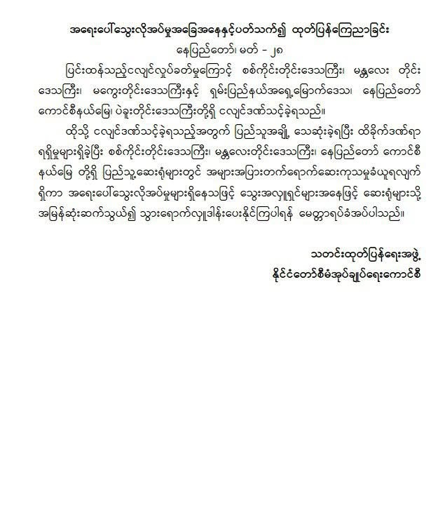 ယနေ့ မတ် ၂၈ ရက်မွန်းတည့်ပိုင်းက မန္တလေးမြို့ကိုဗဟိုပြု၍ အင်အားအလွန်ပြင်းထန်သောငလျင်လှုပ်ခတ်ခဲ့ပြီးနောက် နေပြည်တော်အပါအဝင် တိုင်းနှင့်ပြည်နယ်အချို့၌ ေ-သဆုံးမှုများ၊ ထိခိုက်ဒဏ်ရာရသူများနှင့် ပျက်စီးဆုံးရှုံးမှုများဖြစ်ပေါ်ခဲ့ရသည်။ထိုသို့ ထိခိုက်ဒဏ်ရာရသူများအား သက်ဆိုင်ရာဆေးရုံများတွင်ဆေးကုသမှုပေးလျက်ရှိရာ စစ်ကိုင်းတိုင်း၊ မန္တလေးတိုင်း၊ နေပြည်တော်တို့ရှိ ပြည်သူ့ဆေးရုံများတွင် အများအပြားတက်ရောက်ဆေးကုသမှုခံယူရလျက်ရှိပြီး အရေးပေါ်သွေးလိုအပ်မှုများရှိနေသည်။ပြင်းထန်သည့်ငလျင်လှုပ်ခတ်မှုကြောင့် စစ်ကိုင်း တိုင်း၊ မန္တလေးတိုင်း၊ မကွေးတိုင်းနှင့် ရှမ်းပြည် နယ်(အရှေ့မြောက်ဒေသ)၊ နေပြည်တော်၊ ပဲခူးတိုင်းတို့ရှိ နေရာဒေသများ၌ ငလျင်ဒဏ်သင့်ခဲ့ရသည်။