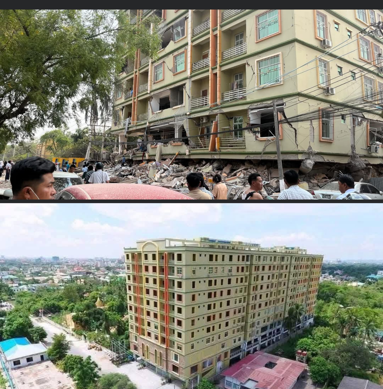 မန္တလေးမြို့ရှိ sky villa condo ၁၁ထပ်ရှိရာမှ ငလျင်ဒဏ်ကြောင့် ၆ထပ်ပဲကျန်ရှိ ကယ်ဆယ်ရေးများပြုလုပ်နေကြောင်းသိရသည်။