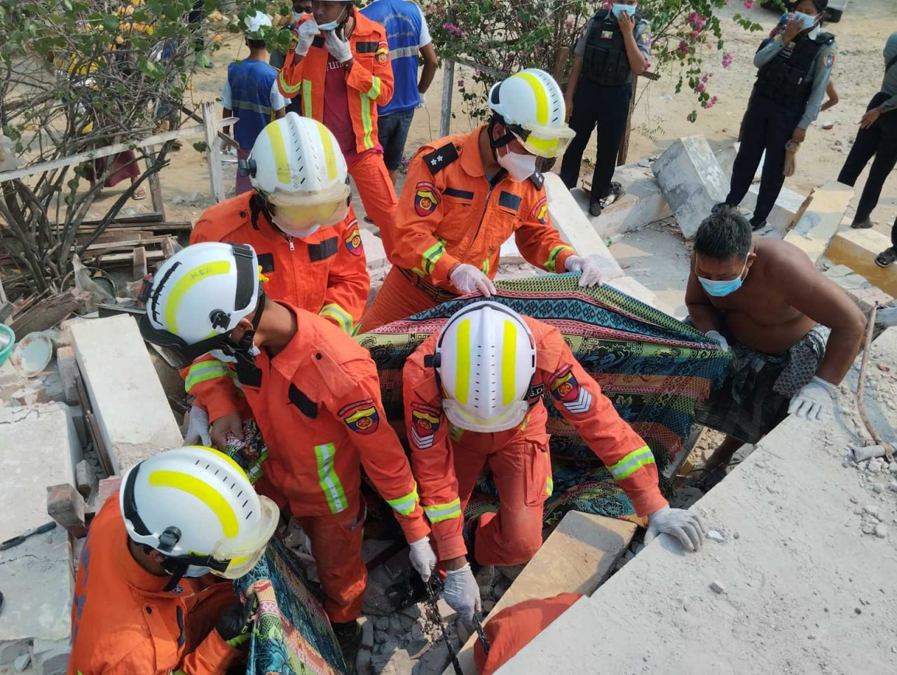 ၂၉.၃.၂၀၂၅ ရက်နေ့၊ ၀၈နာရီ ၀၀ အချိန်တွင် မန္တလေးတိုင်းဒေသကြီး၊ ဝမ်းတွင်းမြို့နယ်၊ အမှတ်(၁)ရပ်ကွက်ရှိ အမှတ်(၇)ချည်မျှင်အထည်စက်ရုံတွင် ငလျင်လှုပ်ခတ်မှုကြောင့် အဆောက်အဦးပြိုကျ၍ ပိတ်မိနေသော မ(၂)ဦးအား ဝမ်းတွင်းမြို့နယ်မီးသတ်စခန်းမှ ရှာဖွေကယ်ဆယ်ရေးလုပ်ငန်းများဆောင်ရွက်ခဲ့ရာ မ(၁)ဦး၏ရုပ်အလောင်းအား ၀၉ နာရီ၄၅ မိနစ်အချိန်တွင် ရှာဖွေတွေ့ရှိခဲ့ပြီး ရှာဖွေကယ်ဆယ်ရေးလုပ်ငန်းများ ဆက်လက်ဆောင်ရွက်လျက်ရှိပါတယ်။
