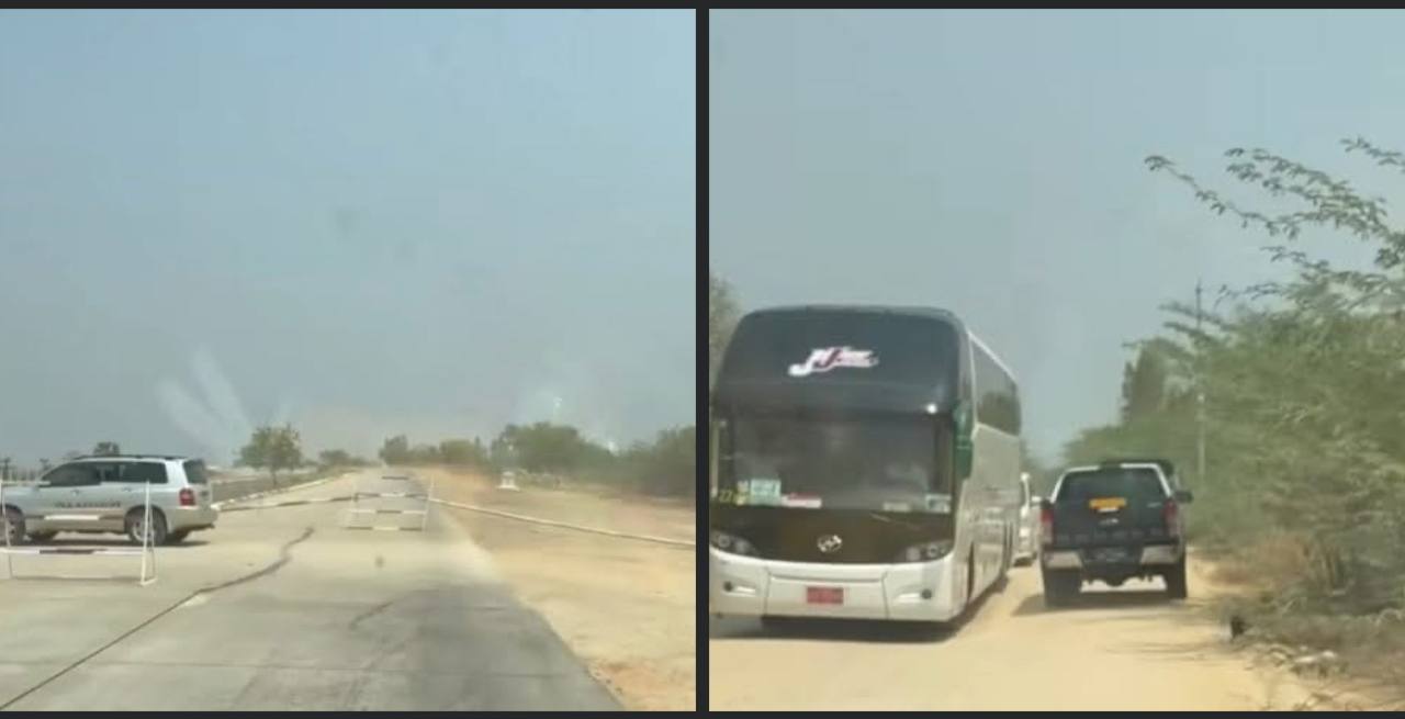 မတ်လ ၂၈ ရက်က အင်အားပြင်းငလျင်လှုပ်ခတ်မှုကြုံပြီးနောက် ရန်ကုန်-မန္တလေးလမ်းတွင် လမ်းအချို့ပျက်စီးကာ သွားလာမှုပြတ်တောက်ခြင်းများရှိနေသော်လည်း အဝေးပြေးယာဉ်လိုင်းအချို့မှာ မတ်လ ၂၉ ရက်မှ စတင်၍ ပြေးဆွဲပေးခြင်းများ လုပ်ဆောင်နေကြောင်း အဝေးပြေးယာဉ်လိုင်းဂိတ်များထံမှ သိရသည်။ရန်ကုန်-မန္တလေးအမြန်လမ်းတွင် ၂၀၁/၀ ရှိ ပလွေးတံတား၊ ၁၉၃/၁ -၂ ရှိ တံတားအဝင်၊ ၁၉၀/၁-၂ ရှိ မှောက်ခုံချောင်းတံတား သွား+ပြန်အခြမ်း၊ ၁၈၈/၇ ရှိ အသွားလမ်း box အဝင် တိုတွင် နိမ့်ကျခြင်းများဖြစ်နေပြီး ၁၉၄/၂ တွင် အသွားလမ်း ကျိုးခြင်း၊ ၁၈၉/၁ တွင် အပြန်လမ်း တွန့်ခေါက်နေခြင်း၊ ၁၈၈/၁-၂ အပြန်လမ်း ကျိုးနေခြင်း (ဘေးမှရှောင်ကွင်းသွား၍ရ)၊ ၁၈၆/၂ တွင် လမ်းသားကွဲအက်နေခြင်း၊ ၁၇၉/၄ တွင် အပြန်လမ်းကျိုးနေခြင်း၊ ၁၇၇/၂ တွင် အသွားလမ်းကျိုးနေခြင်း၊ ၁၇၆/၀-၁ တွင် အသွားလမ်းကျိုးနေခြင်း၊ ၁၇၃/၆ အပြန်လမ်း box အဝင်လမ်းကျိုးနေခြင်း၊ ၁၇၂/၅ အပြန်လမ်း ပေ၂၀၀ ac တွန့်ခေါက်နေခြင်း (ဘေးမှရှောင်ကွင်းသွား၍ရ)၊ ၁၇၁/၆ အပြန်လမ်း တံတားဝင်လမ်း တွန့်ခေါက်နေခြင်း (ဘေးမှ ရှောင်ကွင်းသွား၍ရ)၊ ၁၆၈/၅ အပြန်လမ်း တံတားပေါ် ac ကျိုးနေခြင်း (ဘေးမှရှောင်ကွင်းသွား၍ရ)၊ ၁၆၈/၀ အပြန်လမ်း လမ်းကျိုးနေ့ခြင်း (ဘေးမှရှောင်ကွင်းသွား၍ရ)၊ ၁၆၇/၆ အပြန်လမ်း ကွန်ကရစ်လမ်းကျိုးနေခြင်း၊ ၁၆၇/၅ အပြန်လမ်း ကွန်ကရစ်လမ်း ကျိုးနေခြင်း၊ ၁၆၇/၁-၂ အပြန်လမ်း ကွန်ကရစ်လမ်းကျိုးနေခြင်း၊ ၁၆၆/၆-၇ အပြန်လမ်း ကွန်ကရစ်လမ်း ကျိုးနေခြင်း၊ ၁၆၀/၀-၁ အပြန်လမ်း ကွဲခြင်း၊ ကျိုးခြင်းတိုကြုံရသလို ၁၆၅/၇ တွင် အပြန်လမ်းကျိုးခြင်း၊ ၁၆၅/၁ တွင် ပေ ၈၀၀ ရှိသော ဆွာချောင်းတံတား၏ P3,4,5 တိုင်များ ယိုင်ခြင်း၊ လမ်းသားအပြန်လမ်း ၄ ပေခန့် နိမ့်ကျခြင်းများကိုကြုံနေရကြောင်း သိရသည်။လတ်တလောတွင် ရန်ကုန်-မန္တလေးခရီးစဉ်အတွက် အရေးပေါ်မဖြစ်မနေသွားလာသူများမှာ လမ်းကြောင်းပေါ်ရှိ ပျက်စီးသော နေရာများကိုရှောင်ကွင်း၍ ရန်ကုန်-မန္တလေး အမြန်လမ်းနှင့် ရန်ကုန်-မန္တလေး လမ်းဟောင်းတို့မှ တစ်လှည့်စီ မောင်းနှင် သွားလာနေရကြောင်းလည်း သိရသည်။