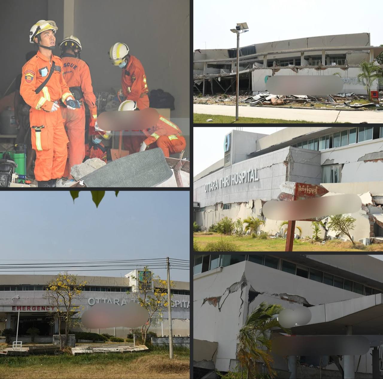 နေပြည်တော် ကောင်စီနယ်မြေ၊ ဥတ္တရသီရိ ပင်လုံဆေးရုံကြီးတွင် ရှာဖွေကယ်ဆယ်ရေးလုပ်ငန်းများ ဆက်လက်ဆောင်ရွက်နေပြီး ယနေ့(မတ် ၃၁ ရက်)တွင် Dead Body အချို့ အား တွေ့ရှိထားကြောင်း သိရသည်။ဥတ္တရသီရိ ပင်လုံဆေးရုံကြီ၏ အောက်ထပ် တစ်ထပ်လုံးသည် ပြိုကျပျက်စီး၍ ပိတ်မိနေပြီး လူနာရှိသည့် နေရာများ၊ Dead Body ရှိသည့် နေရာများအား ဖောက်၍ ကယ်ဆယ်နေရခြင်းကြောင်းနှင့် အဆောက်အဦး၏ ရုတ်တရက်ပြိုကျသွားနိုင်သည့် အနေအထားကြောင့် အန္တရာယ်များအကြားမှ ကယ်ထုတ်နေရသည့်အတွက် ကယ်ဆယ်ရေးအဖွဲ့များအနေဖြင့် သတိထား၍ ဆောင်ရွက်နေရကြောင်း ဥတ္တရသီရိခရိုင် မီးသက်ဦးစီးဌာန ဦးစီးမှူးက ပြောကြားသည်။