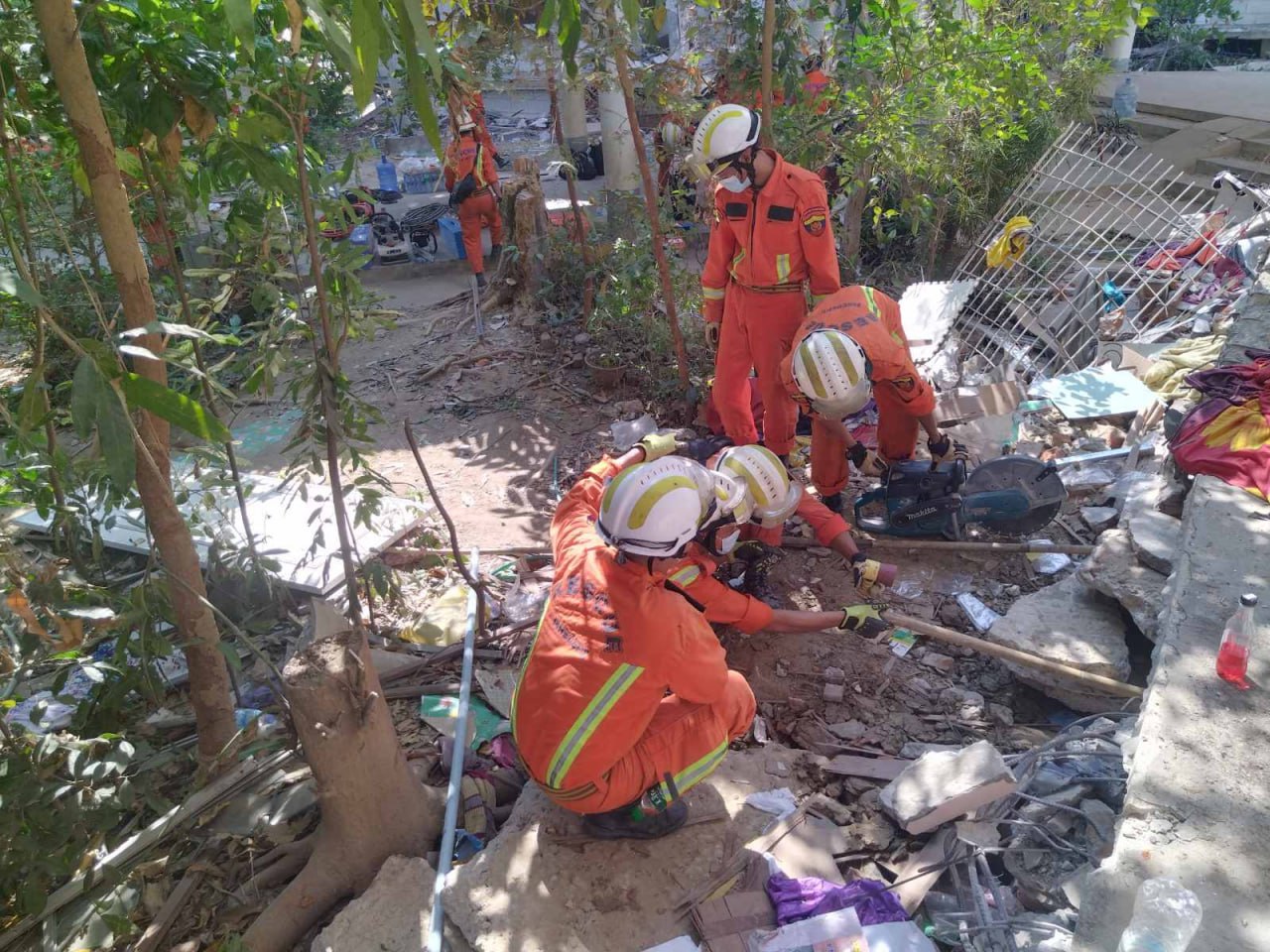 နေပြည်တော်၊ ဇမ္ဗူသီရိမြို့နယ်တွင် ငလျင်လှုပ်ခတ်မှုကြောင့် ဘူးကွဲအိမ်ရာ၊ တိုက်ခန်းအမှတ် (၄၃၀၈)အဆောက်အဦးပြိုကျ၍ ပိတ်မိနေသူများအား ၁.၄.၂၀၂၅ ရက်နေ့တွင် ဧရာဝတီတိုင်းဒေသကြီးမီးသတ်ဦးစီးမှူးရုံးမှ ရှာဖွေကယ်ဆယ်ရေးတပ်ဖွဲ့ဝင်များသည် သက်ဆိုင်ရာအဖွဲ့အစည်းများ ပူးပေါင်း၍ ရှာဖွေကယ်ဆယ်ရေးလုပ်ငန်းများ ဆောင်ရွက်လျက်ရှိရာ သေဆုံး ကျား(၁)ဦး၏ ရုပ်အလောင်းအား ရှာဖွေတွေ့ရှိခဲ့ပြီး ရှာဖွေကယ်ဆယ်ရေးလုပ်ငန်းများလည်း လက်ရှိမှာ ဆက်လက်ဆောင်ရွက်လျက်ရှိပါတယ်။