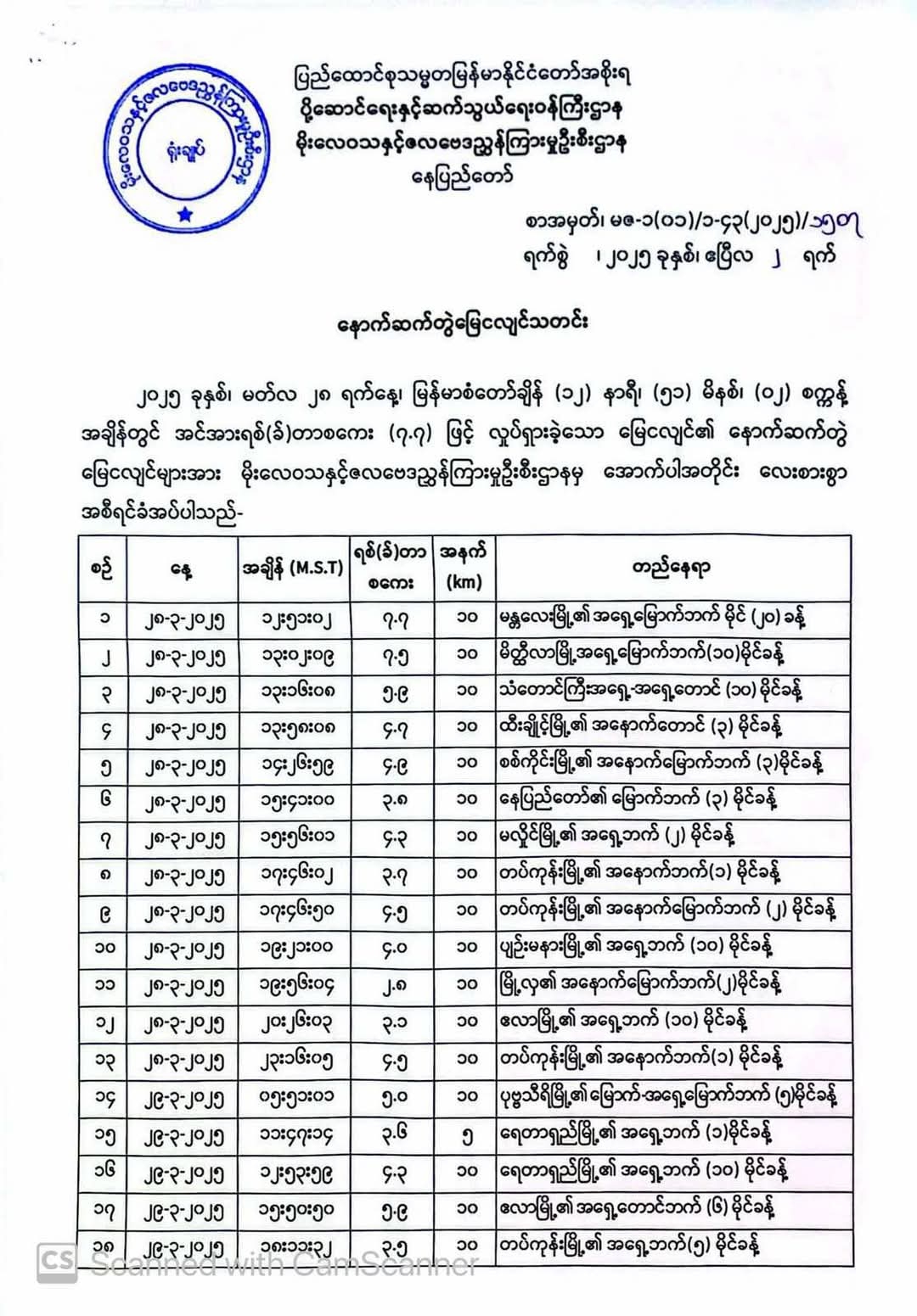 မတ်လ၂၈ရက်မှယနေ့၂.၄.၂၀၂၅ရက်ထိနောက်ဆက်တွဲမြေငလျင်လှုပ်ခတ်မှုမှာအောက်ပါအတိုင်းဖြစ်ပါတယ်။