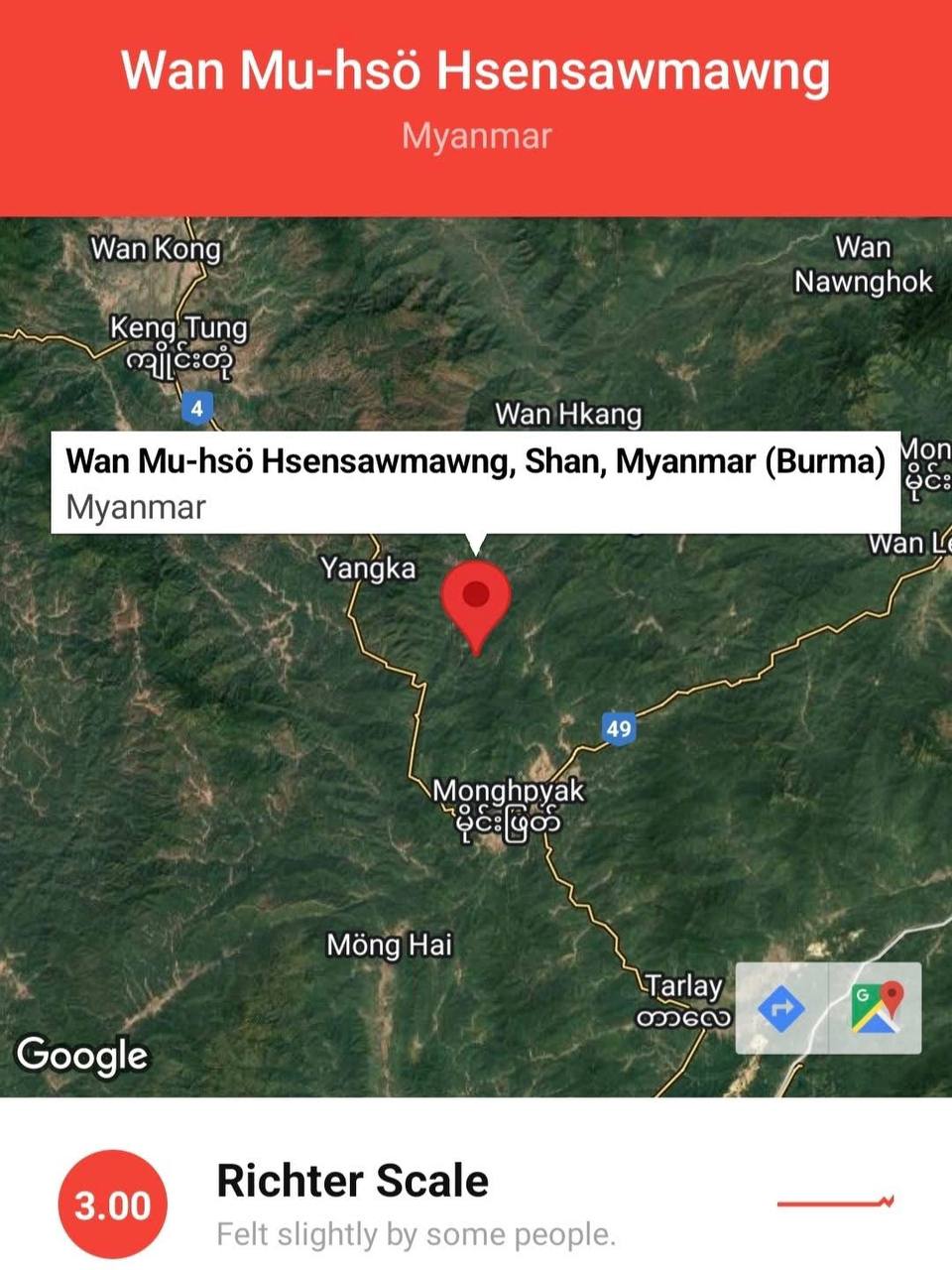 မေ ၁၄ ရက် ၂၀၂၅ ခုနှစ်၊ညနေပိုင်း မြန်မာစံတော်ချိန် ၀၅ နာရီ ၂၀ မိနစ် ၀၉ စက္ကန့်အချိန်ခန့်က တောင်ကြီးမြို့ရဲ့ အရှေ့ဘက် ၁၈၆ မိုင်ခန့်အကွာ ရှမ်းပြည်နယ်ကျိုင်းတုံမြို့၏ အရှေ့တောင်ဘက် ၂၆ မိုင်အကွာ မိုင်းဖြတ်မြို့၏မြောက်ဘက် ၉ မိုင်အကွာ တောင်တန်းဒေသအား ဗဟိုပြု၍မြေအောက်အနက် ၆ မိုင်အကျော်မှ မဂ္ဂနီကျု ၃.၀ အဆင့်ရှိ မြေငလျင်ငယ်ထပ်မံလှုပ်ရှားသွားပါသည်။