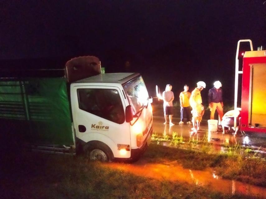 ၁၄.၅.၂၀၂၅ ရက်ယနေ့၊ ၂၃ နာရီ၃၀မိနစ် အချိန်ခန့်၊ နေပြည်တော်-ရန်ကုန်ဘက်ခြမ်း၊ မိုင်တိုင်အမှတ်(၅၉/၇)ဖာလုံတွင် ခြောက်ဘီးအဖြူရောင်ယာဉ်သည် လမ်းဘေးမြေသားလမ်းတွင် ဘီးကျွံနေကြောင်း အကူညီတောင်းခံလာသဖြင့် ဘောနီအမြန်လမ်းနယ်မြေမီးသတ်စခန်းမှ မီးငြှိမ်းသတ်ယာဉ်(၁)စီး၊ သန္ဓေမီးသတ်တပ်ဖွဲ့ဝင်များဖြင့် သွားရောက်ကူညီဆောင်ရွက်ပေးခဲ့ပါတယ်။