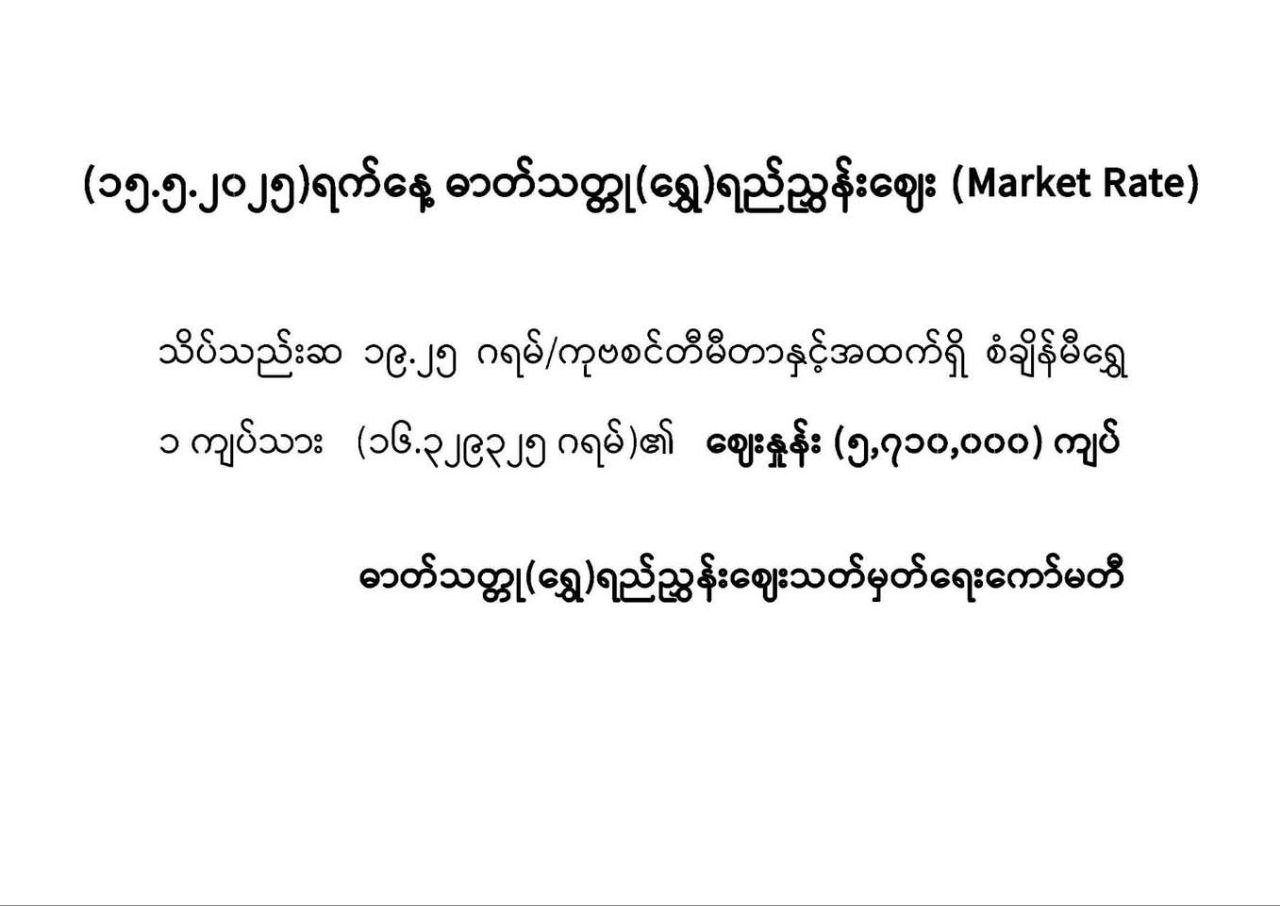 ယနေ့ ပြည်တွင်းဓာတ်သတ္တု(ရွှေ )ရည်ညွှန်းစျေးနှုန်း