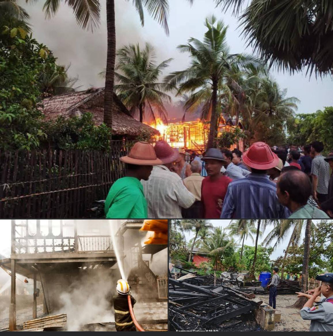 ပေါင်မြို့နယ်မှာ ထမင်းအိုးတည်ထားပြီး ဈေးသွားရာမှ မီးလောင်မှုဖြစ်ပွားပြီး နေအိမ် ၃ လုံး မီးလောင်ဆုံးရှုံး