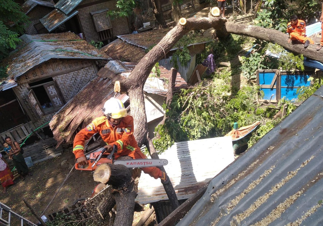 ၁၄.၁၀.၂၀၂၅ ရက်နေ့၊ ၀၆ နာရီ၃၀မိနစ် အချိန်ခန့်၊ စစ်ကိုင်းတိုင်းဒေသကြီး၊ မုံရွာမြို့၊ ရုံးကြီးရပ်ကွက်၊ လျှပ်စစ်ရုံးလမ်း၊ လမ်းသွယ်အတွင်း သစ်ပင်လဲကျ၍ နေအိမ်ပေါ်သို့ ပိနေကြောင်း သတင်းရရှိသဖြင့် မုံရွာခရိုင်မီးသတ်စခန်းမှ သန္ဓေမီးသတ်တပ်ဖွဲ့ဝင်များဖြင့် ရှင်းလင်းရေးလုပ်ငန်းများ ဆောင်ရွက်ခဲ့ပါသည်။