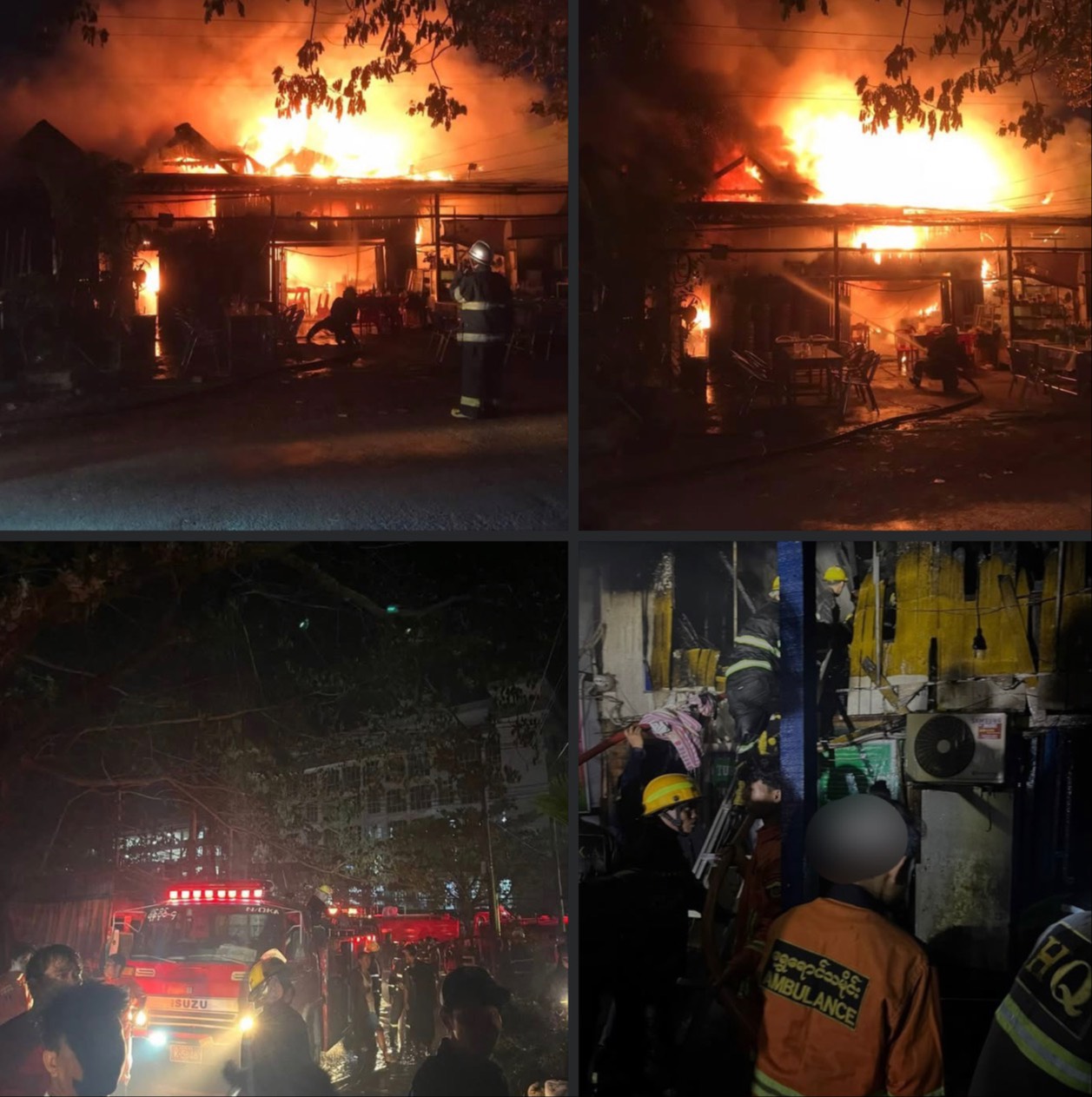 ရန်ကုန်တိုင်းဒေသကြီး၊ မြောက်ဥက္ကလာပမြို့နယ်၊ မေဓာဝီဆေးရုံအနီးက စားသောက်ဆိုင်တစ်ဆိုင်မှာ မတ်လ၁၈ရက် ည၆နာရီ၄၁မိနစ်ခန့်က မီးလောင်မှုဖြစ်ပွားခဲ့တယ်လို့ မြန်မာနိုင်ငံမီးသတ်တပ်ဖွဲ့ကနေ သိရပါတယ်။ည၆နာရီ၄၅မိနစ်မှာ မီးထိန်းနိုင်ခဲ့ပြီး ၆နာရီ၅၃မိနစ်မှာ မီးငြိမ်းသွားတယ်လို့လည်း သိရပါတယ်။မီးလောင်မှုကြောင့် စားသောက်ဆိုင်တစ်ဆိုင်လုံးနီးပါး မီးလောင်ကျွမ်းသွားတာကိုလည်း တွေ့ရပါတယ်။