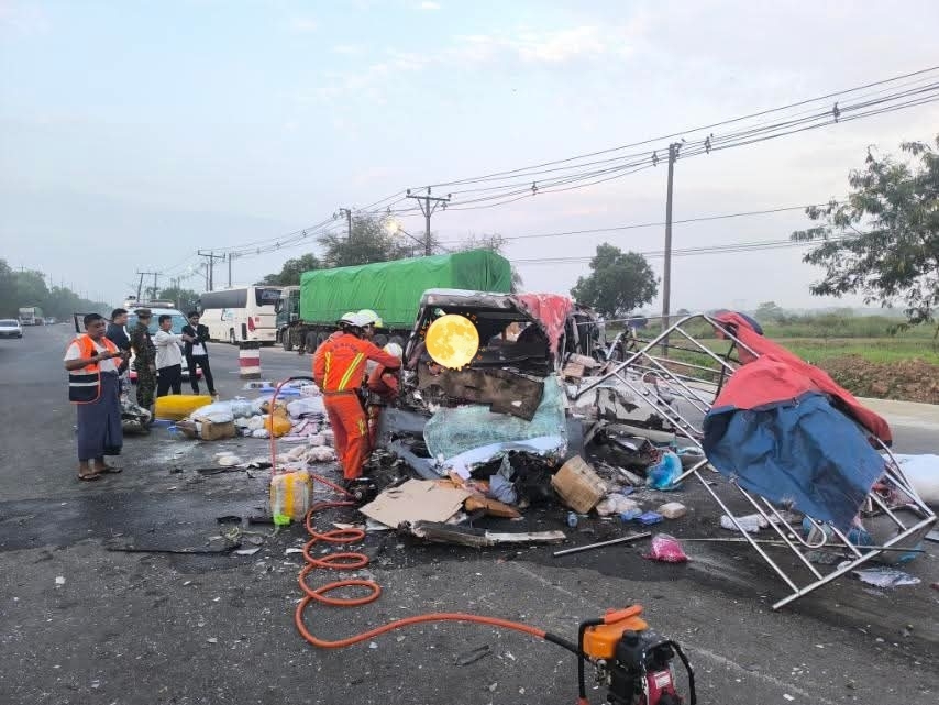 ရန်ကုန်တိုင်း၊ လှည်းကူးမြို့နယ်၊ အမှတ်(၃)လမ်းဆုံ၊ စစ်ဆေးရေးဂိတ်အနီးတွင် ယာဉ်တိုက်မှုဖြစ်ပွား