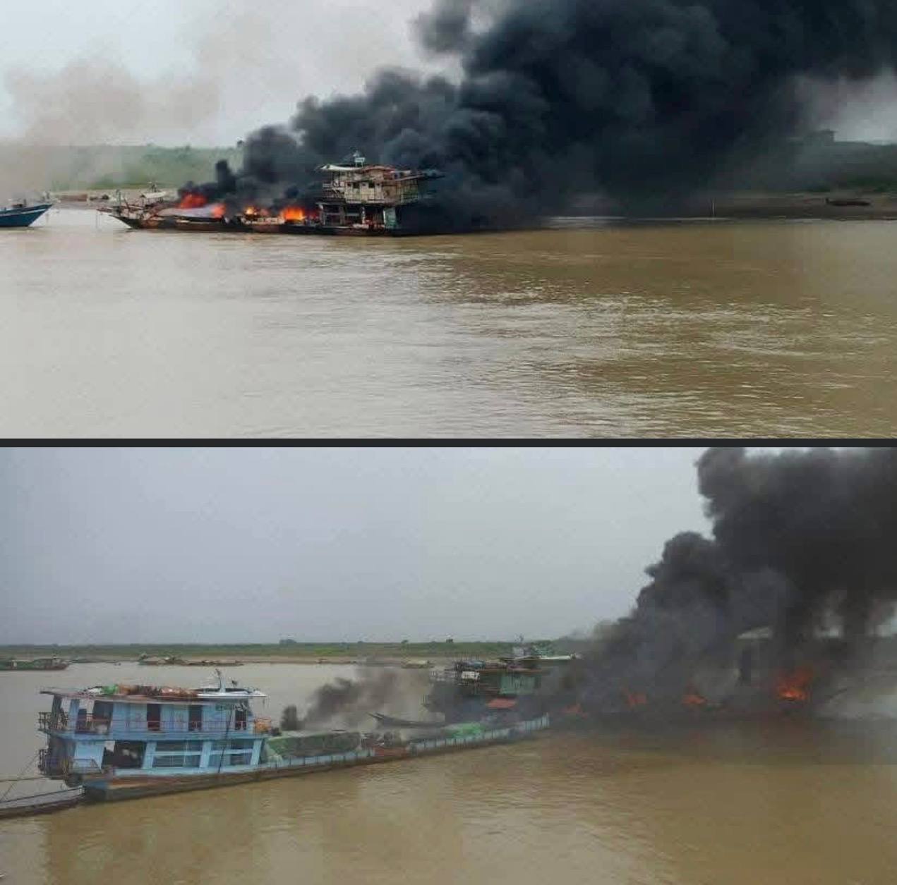 စစ်ကိုင်းတိုင်းအထက်ပိုင်း၊ ဟုမ္မလင်းမြို့နယ် ချင်းတွင်းမြစ်ရှိ ခိုပဲဝဆိပ်ကမ်းမှာ မနေ့က မတ် ၂၉ ရက်နေ့ ၊ နေ့လယ် ၁ နာရီကျော်လောက်မှာ စက်လှေတွေမီးစတင်လောင်ကျွမ်းခဲ့တာဖြစ်ပြီး မီးစတင်လောင်ကျွမ်းခဲ့တဲ့ စက်သုံးဆီတင်စက်လှေတစီးကတော့ ဒီနေ့ မတ် ၃၀ ရက်နေ့ ညနေအထိလည်း မီးလောင်နေဆဲဖြစ်တယ်လို့ သိရပါတယ် ။ လက်ရှိမှာ စက်လှေသုံးစီးအနက် နှစ်စီးကတော့ မီးငြိမ်းသွားကြောင်း ၊ ကျန်တစီးက မီးငြိမ်းသတ်ဖို့ခက်ခဲတဲ့အခြေအနေတွေကြောင့် ခုချိန်ထိ မီးလောင်နေဆဲ ဖြစ်လို့ ငြိမ်းသတ်နေရကြောင်းနဲ့ လတ်တလောမှာ ရုပ်အလောင်းတခုတော့ ရှာတွေ့ထားတယ်လို့ ဟုမ္မလင်း မြို့နယ်မီးသတ်ဦးစီးဌာနက သိရပါတယ်။ အဆိုပါ စက်သုံးဆီ စက်လှေဟာ မုံရွာကနေ ဟုမ္မလင်းမြို့ကို စက်သုံးဆီတင်ဆောင်လာတဲ့ စက်လှေဖြစ်ကြောင်းသိရပြီး မီးလောင်မှုအတွင်း ပေါက်ကွဲမှုတွေပါ ရှိခဲ့တယ်လို့ သိရပါတယ် ။ လက်ရှိမှာတော့ ဟုမ္မလင်း မြို့နယ်မီးသတ်တပ်ဖွဲ့နဲ့ ဒေသခံစက်လှေလုပ်သားတွေ ပူးပေါင်းပြီး မီးငြိမ်းသတ်နေကြရဆဲဖြစ်တယ်လို့ သိရပါတယ်။